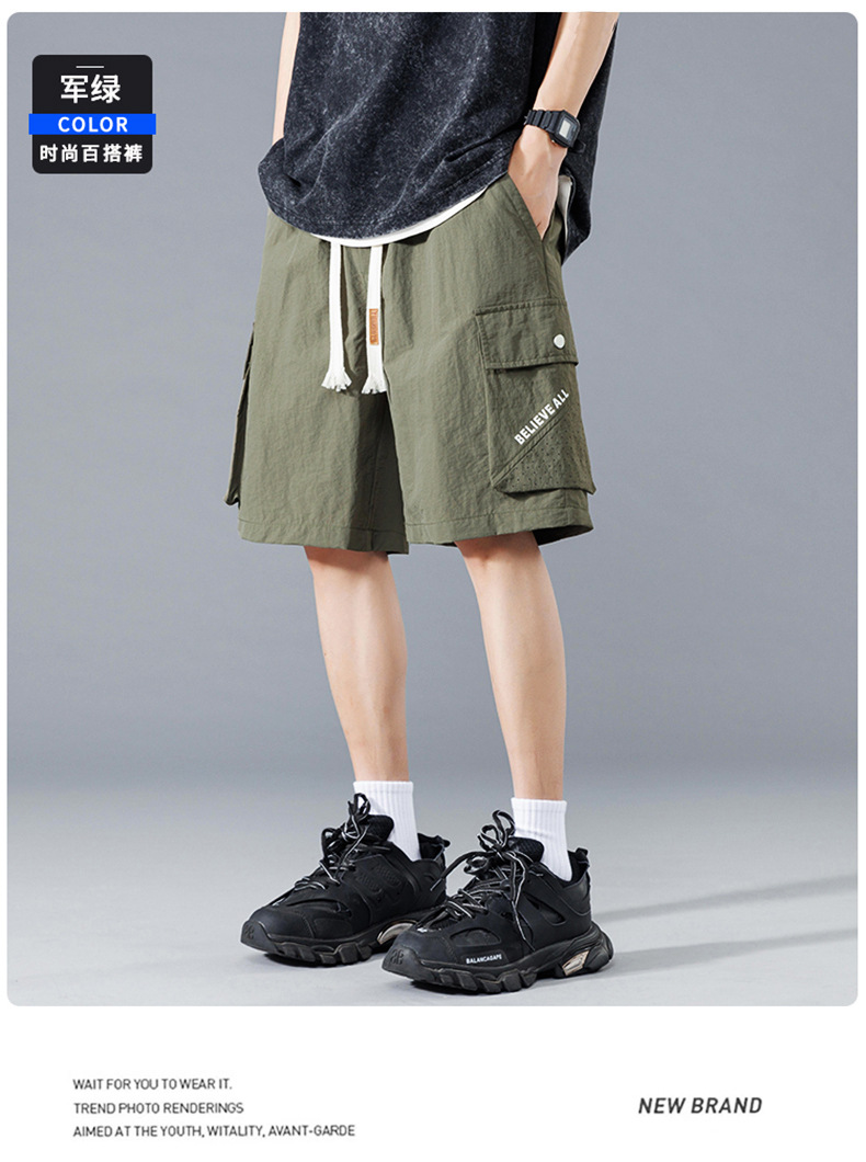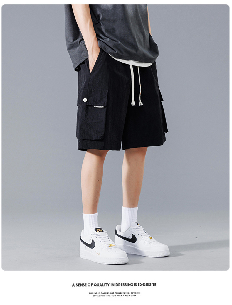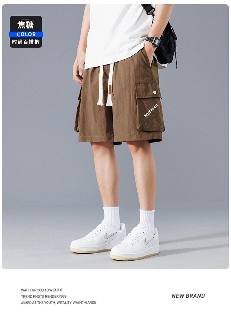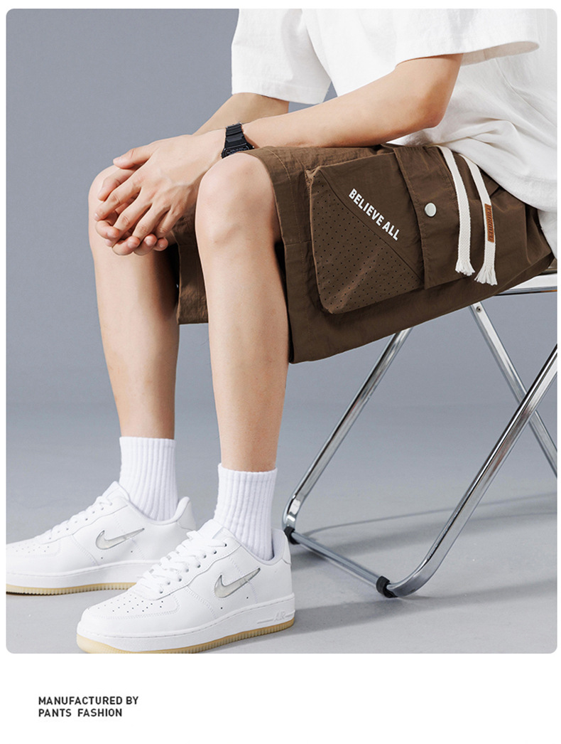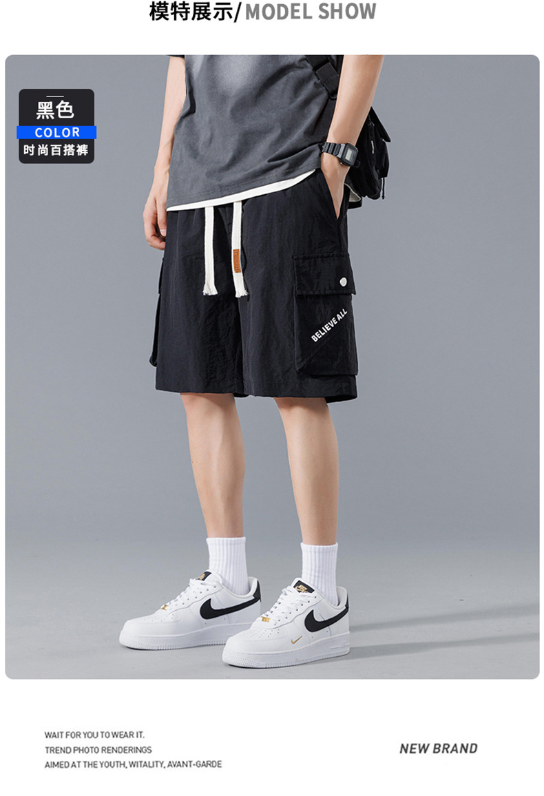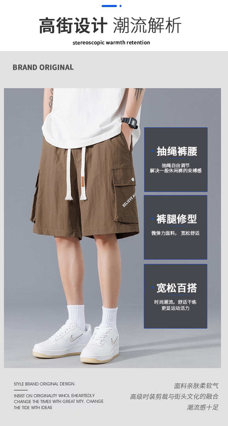 여름 트렌디 한 남성용 작업복 패치 백 5 점 중형 바지 통풍 대형 플러스 뚱뚱한 느슨한 통기성 아이스 실크 펀치 짧은 바지스토어 가기