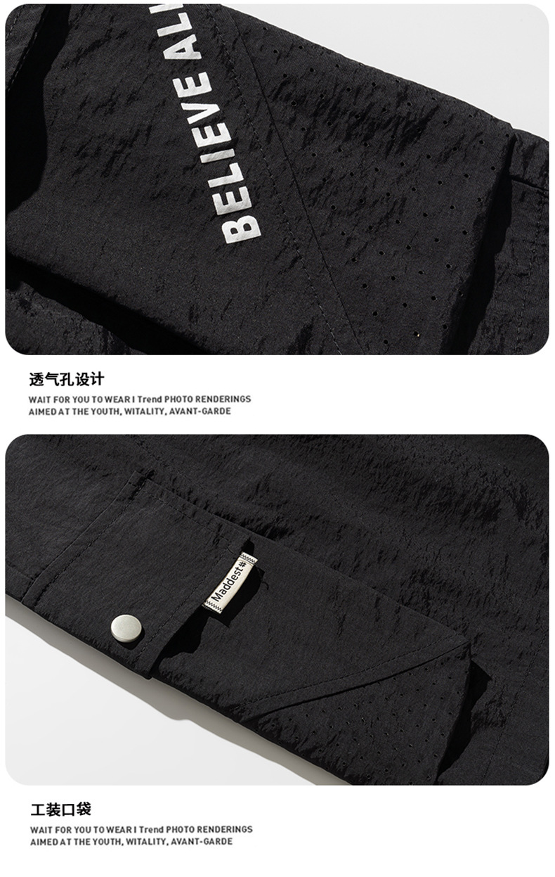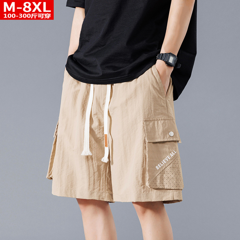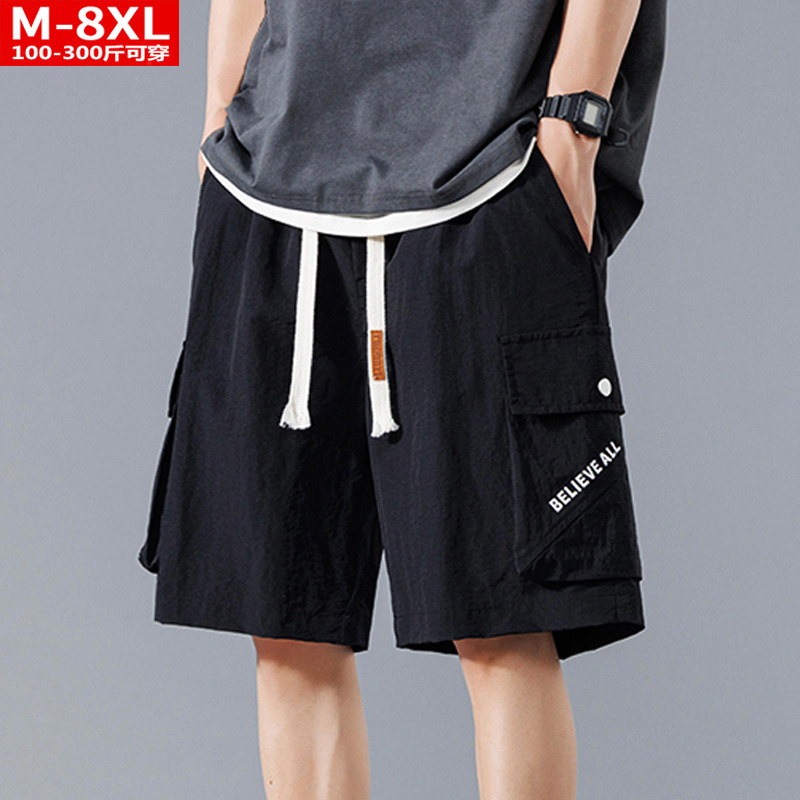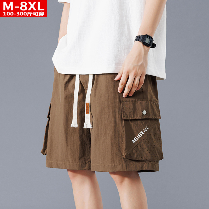 여름 트렌디 한 남성용 작업복 패치 백 5 점 중형 바지 통풍 대형 플러스 뚱뚱한 느슨한 통기성 아이스 실크 펀치 짧은 바지
