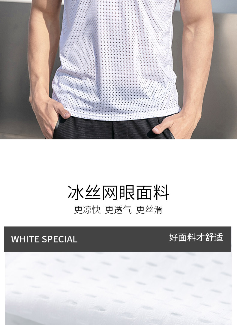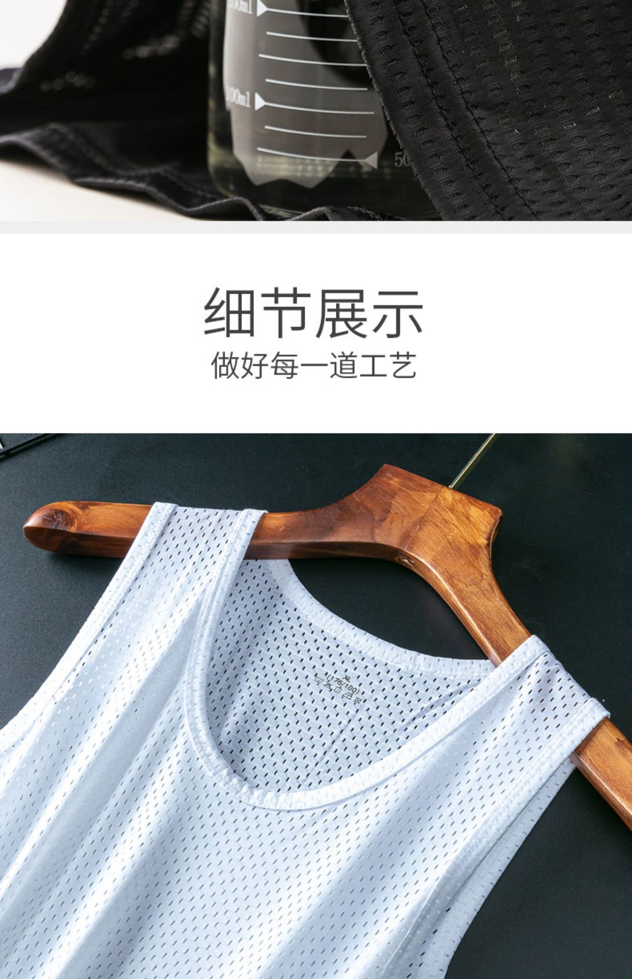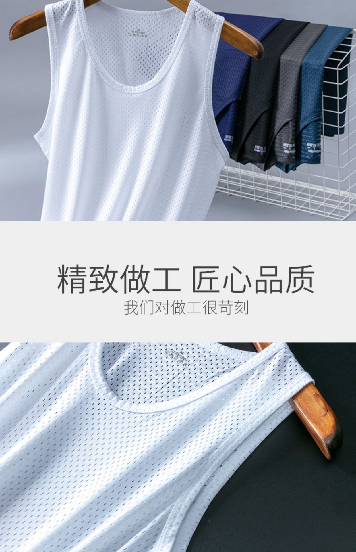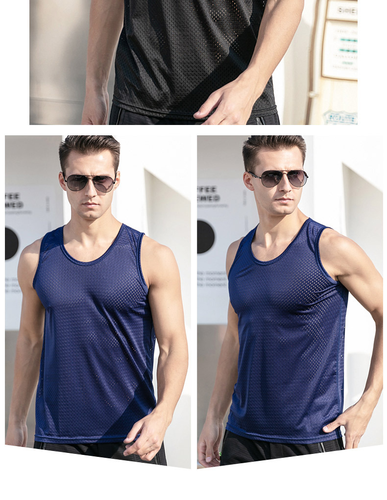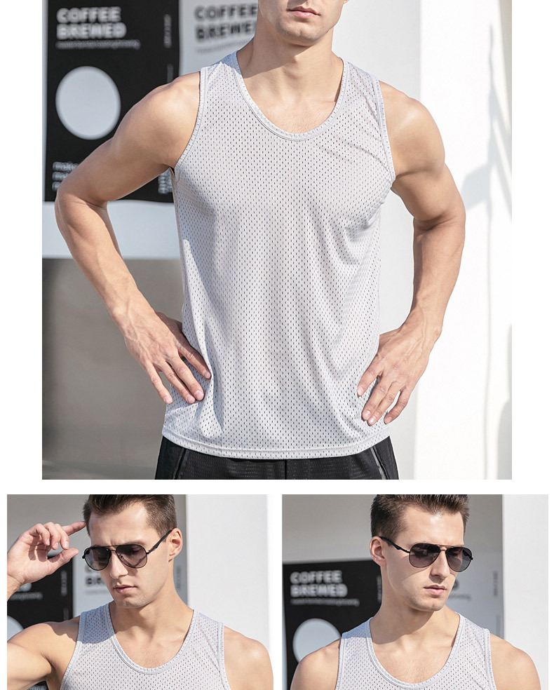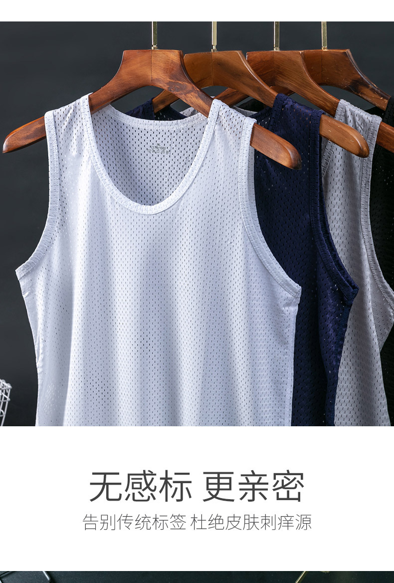 아이스 실크 조끼 남자 여름 얇은 외모 피트니스 허들 메쉬 스포츠 허리 코트 느슨한 빠른 건조 소매 티셔츠