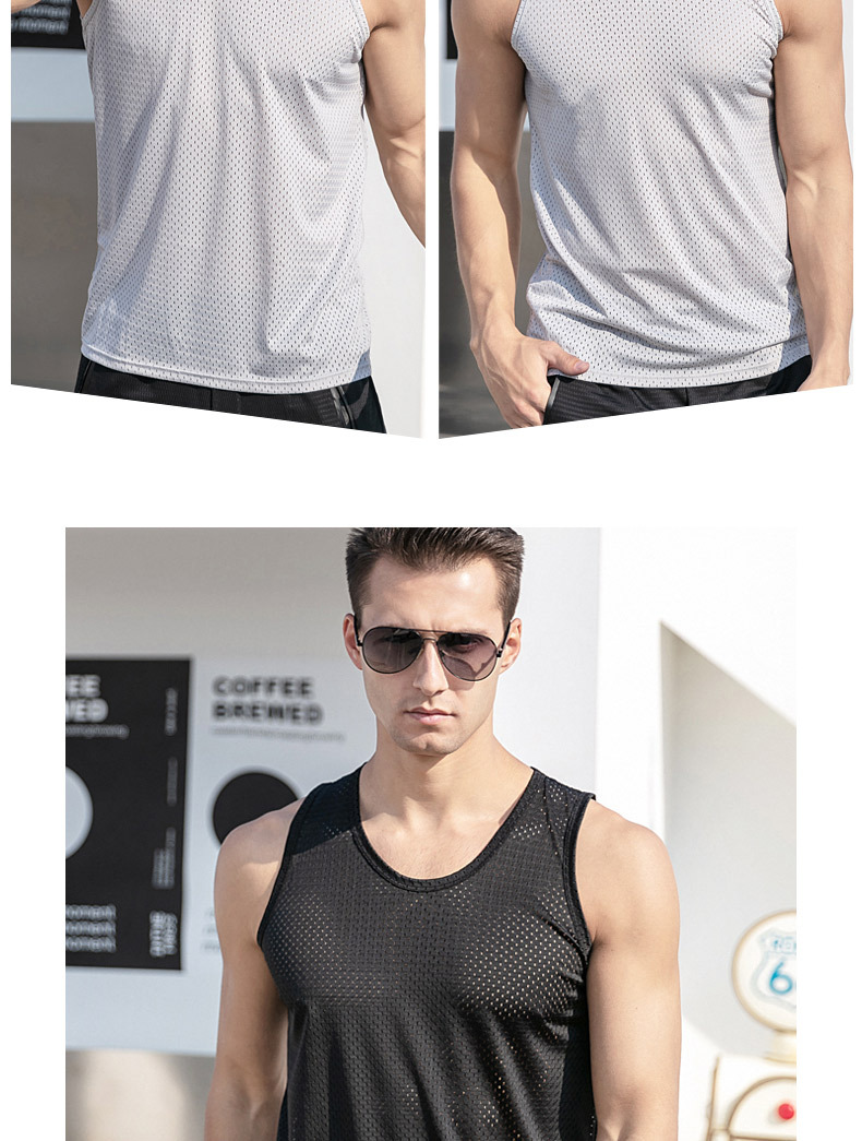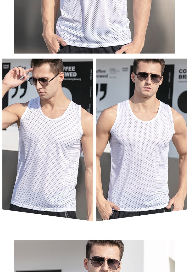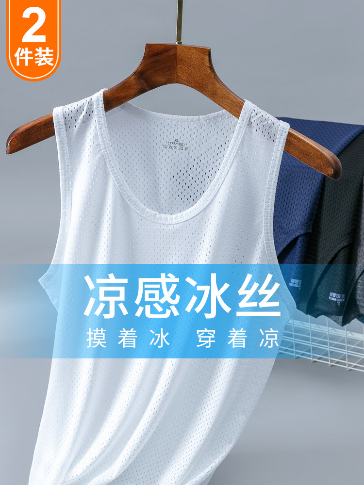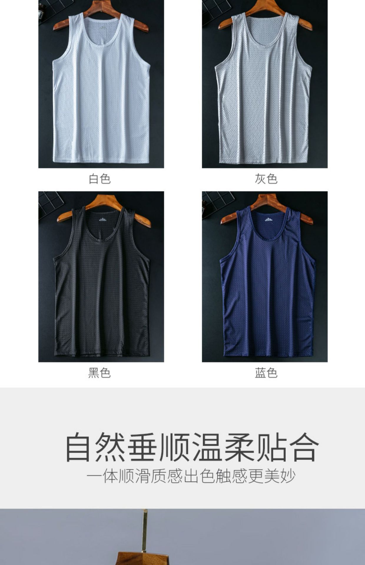 아이스 실크 조끼 남자 여름 얇은 외모 피트니스 허들 메쉬 스포츠 허리 코트 느슨한 빠른 건조 소매 티셔츠스토어 가기