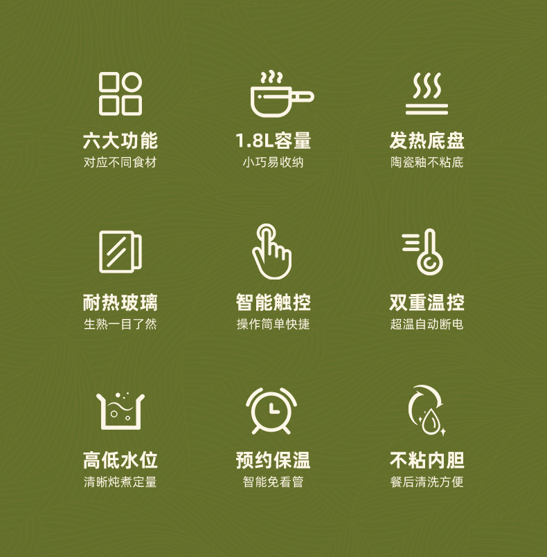 • 지능형 단일 냄비 1.8L 스팀 그리드