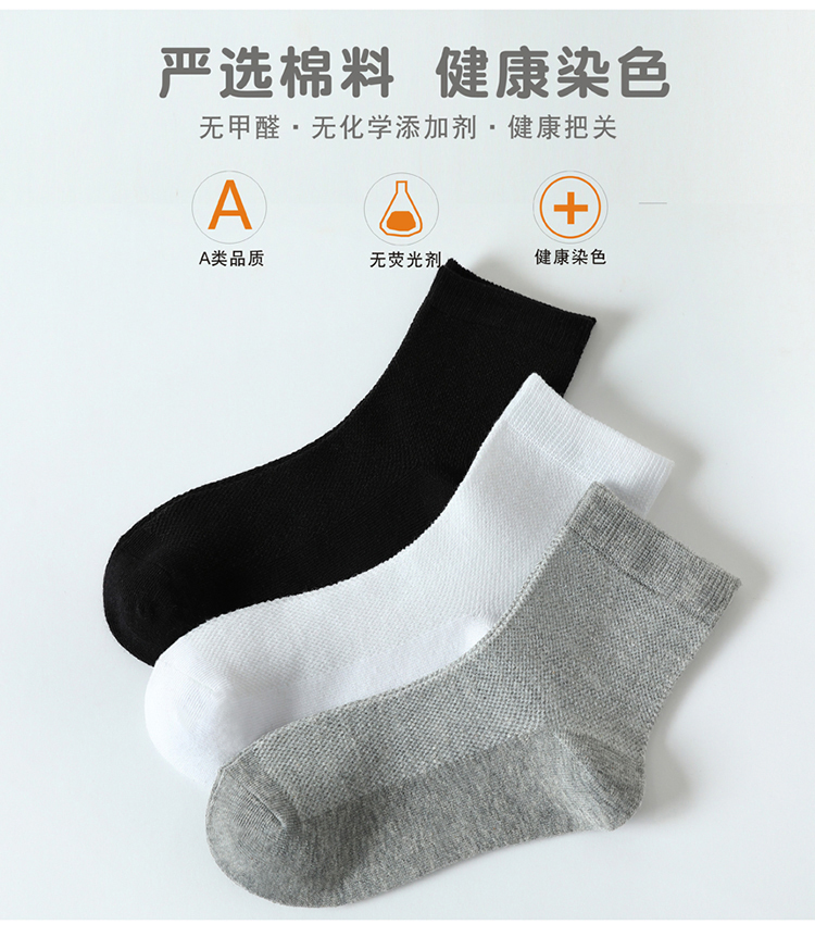 儿童白色学生袜子网眼纯棉春夏季薄款男童女童白袜春秋中大童满和