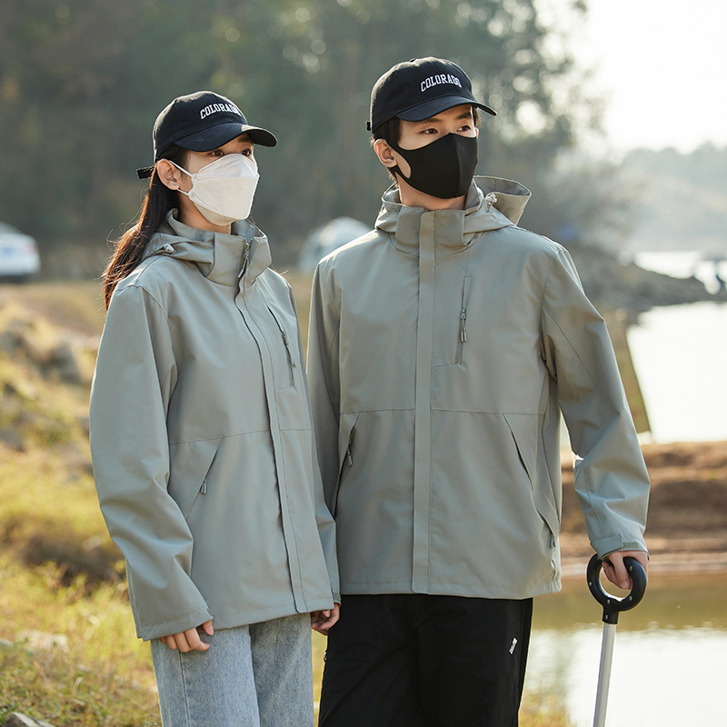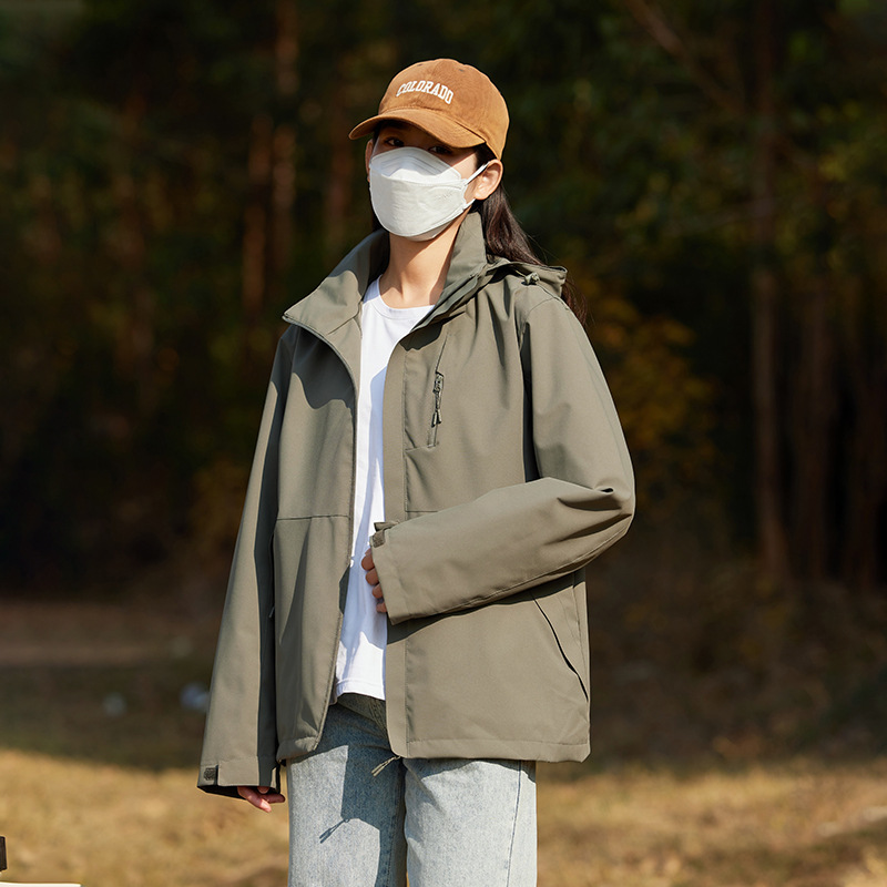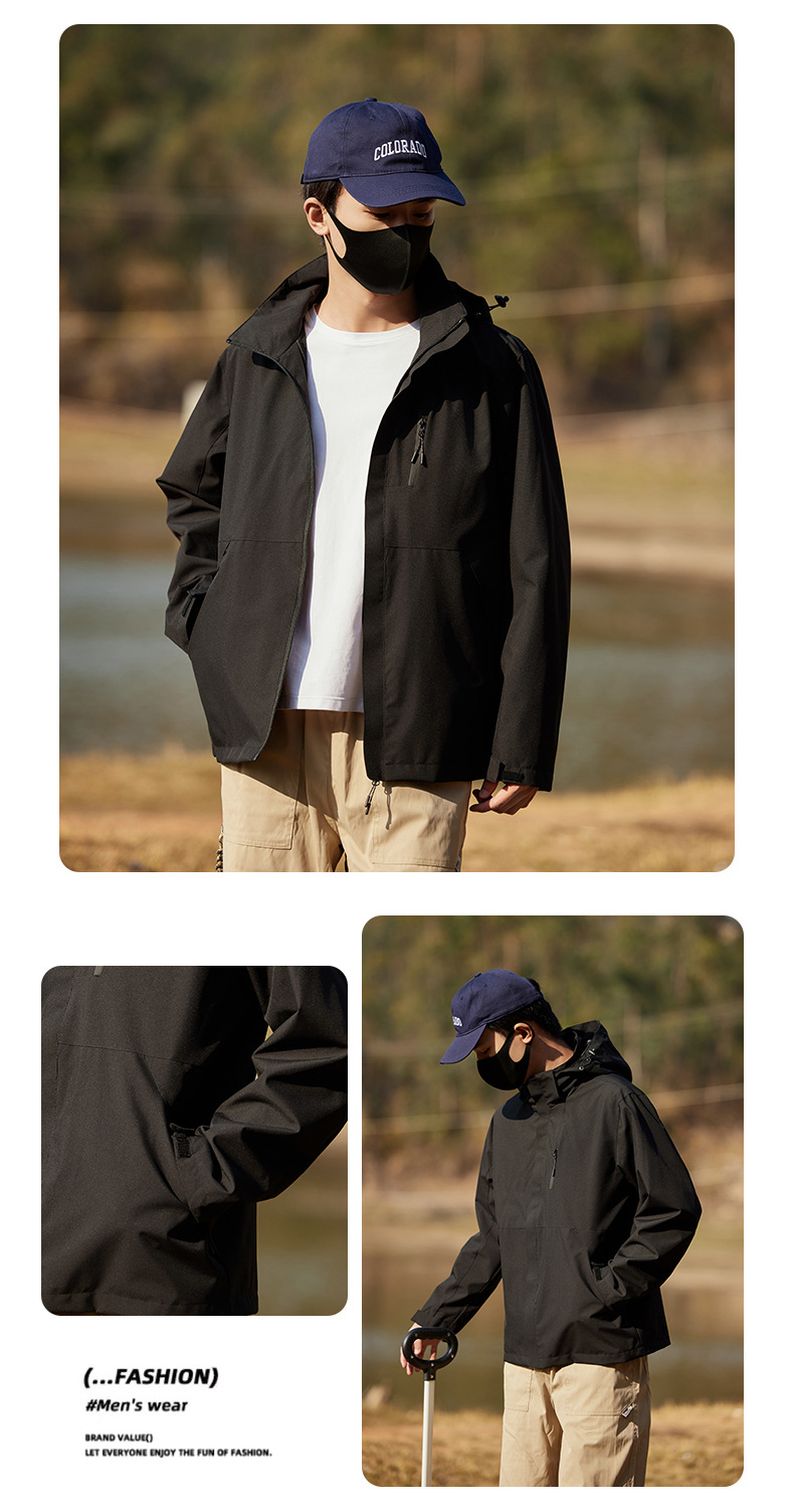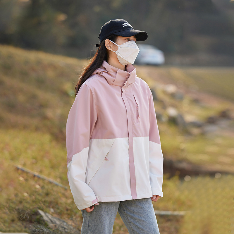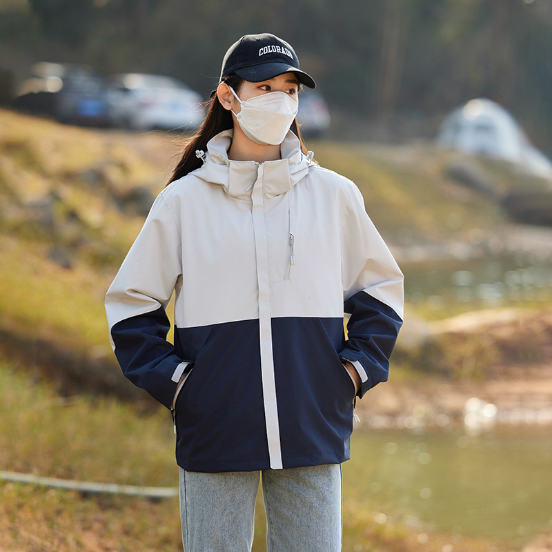 남성과 여성의 방풍 재킷 봄과 가을 유행 브랜드 느슨한 이동식 캡 툴링 재킷 야외 등산 세트