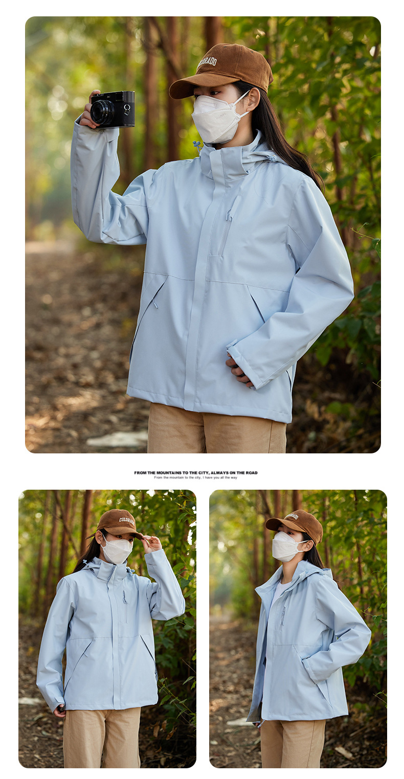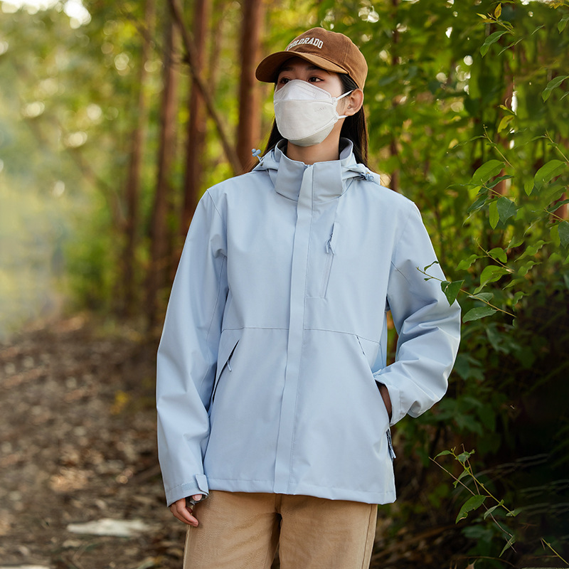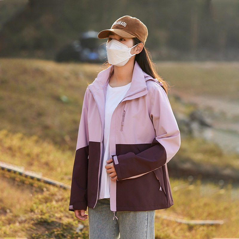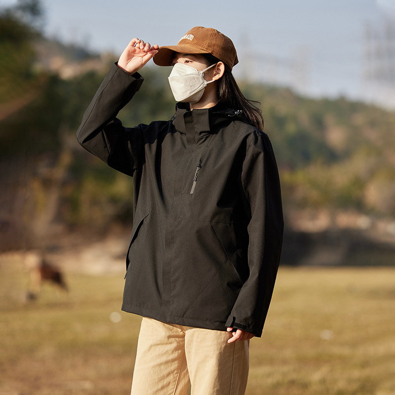 남성과 여성의 방풍 재킷 봄과 가을 유행 브랜드 느슨한 이동식 캡 툴링 재킷 야외 등산 세트