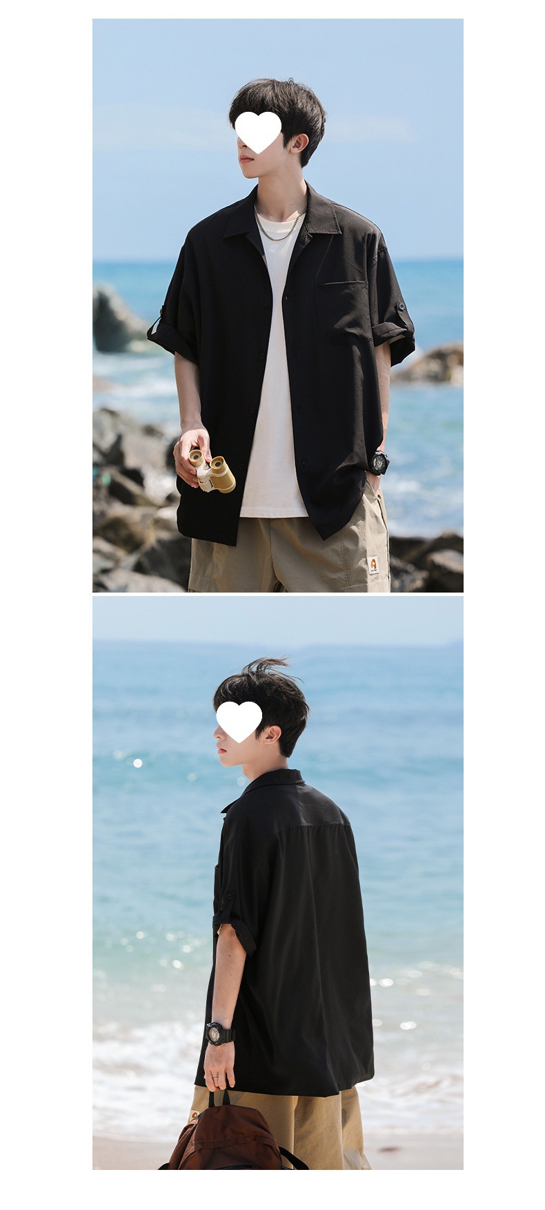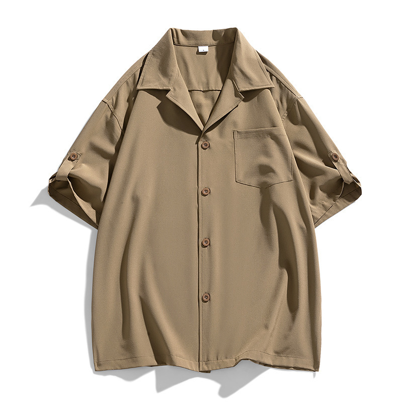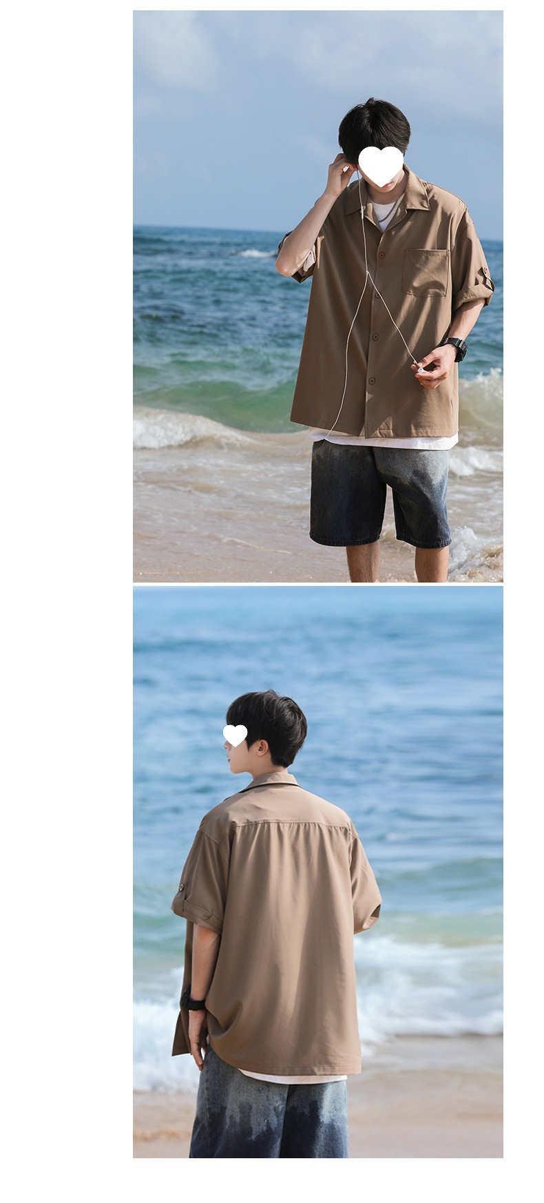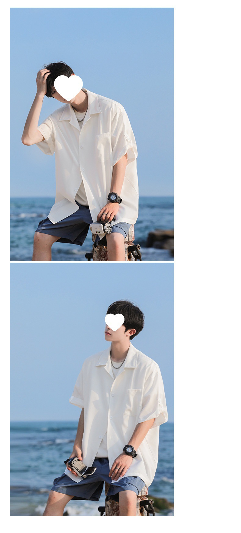 아이스 실크, 쿠바 칼라 반팔 셔츠 소년 2024 여름 새로운 일본 느슨한 십대 재킷