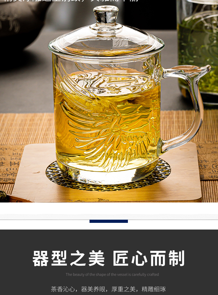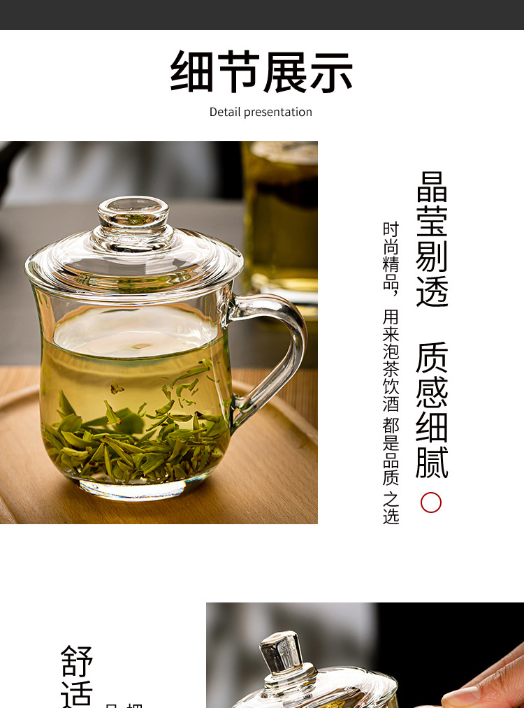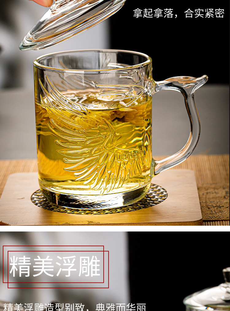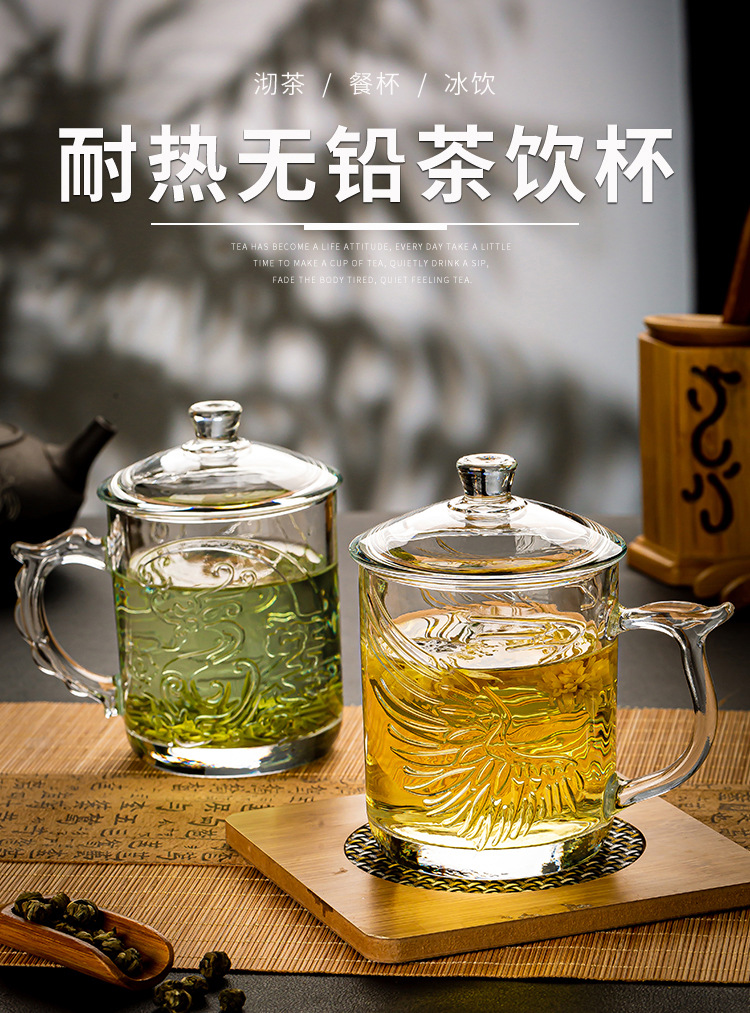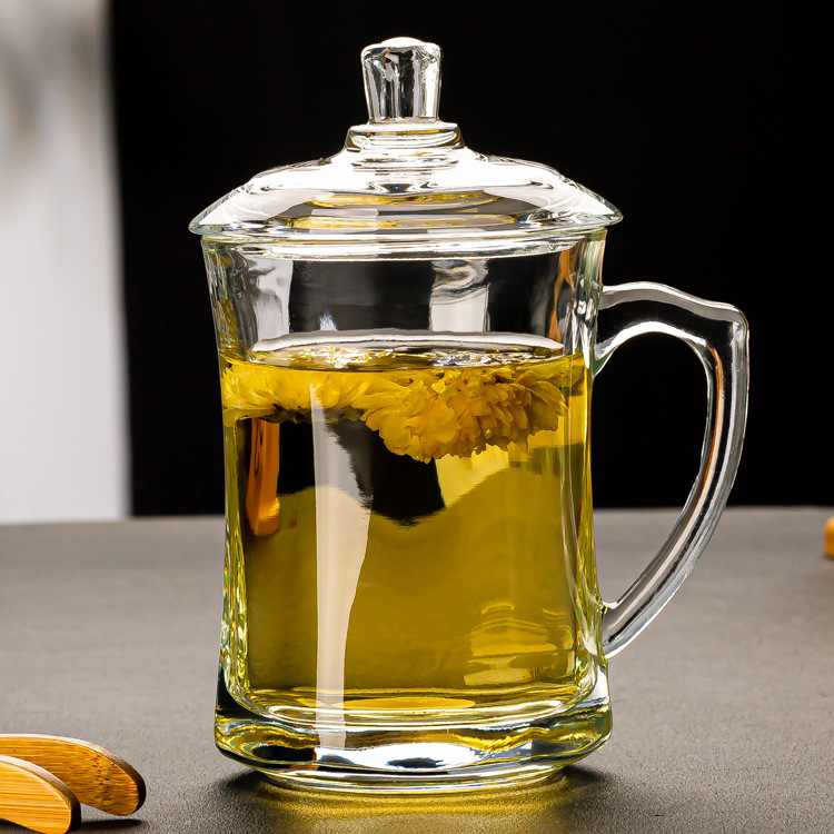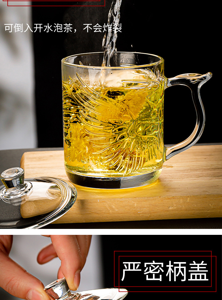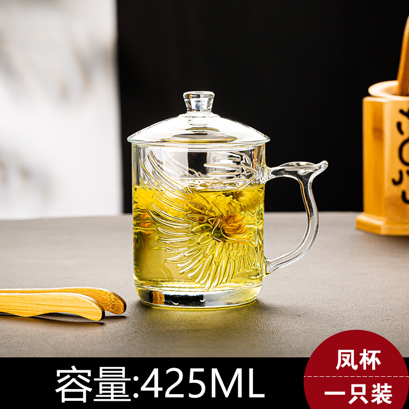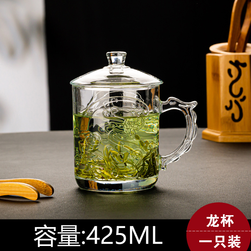 그린 애플 가정용 차 마시는 컵 뚜껑 투명 유리 컵 포옹 사무실 남녀 내열성 차 차 차 컵스토어 가기