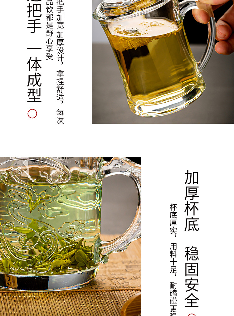 그린 애플 가정용 차 마시는 컵 뚜껑 투명 유리 컵 포옹 사무실 남녀 내열성 차 차 차 컵