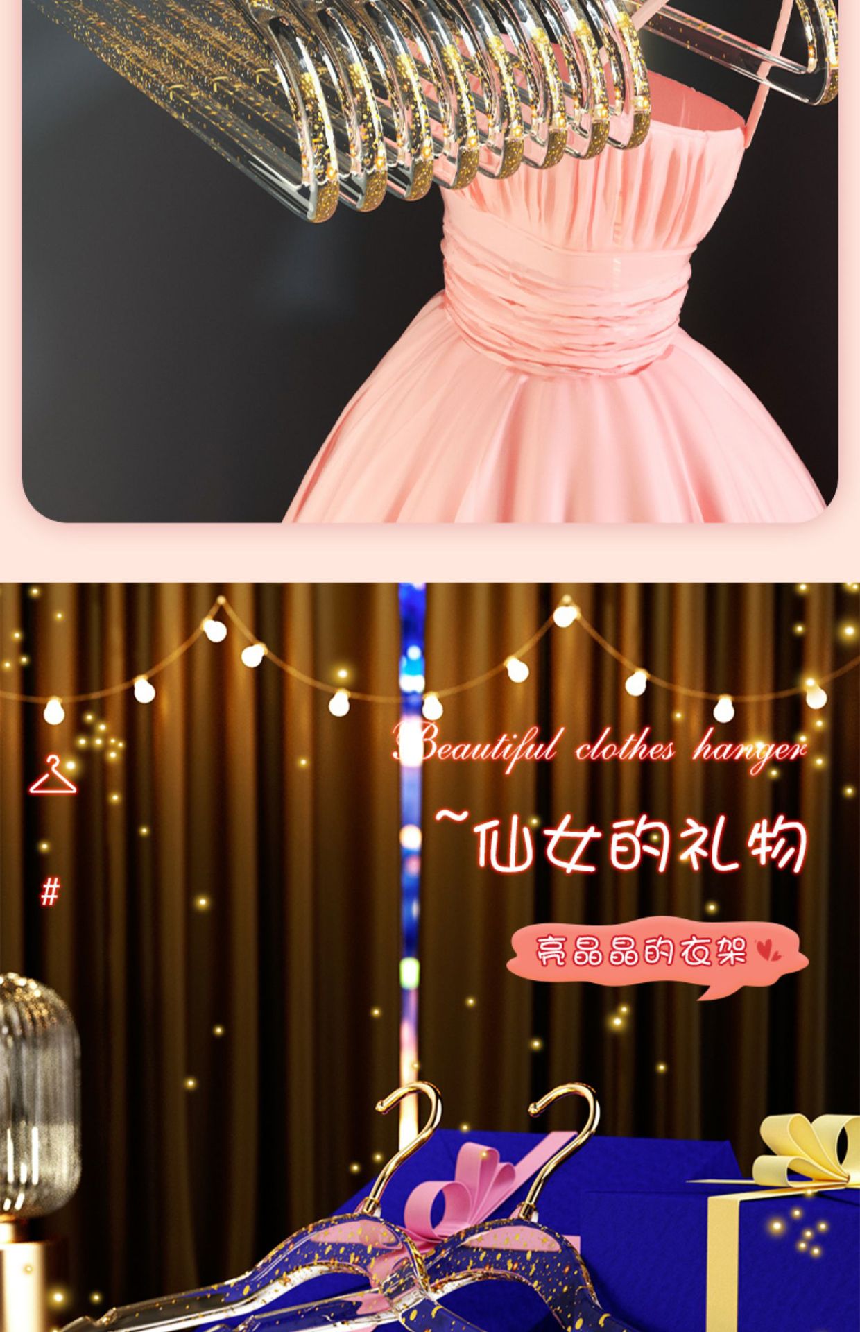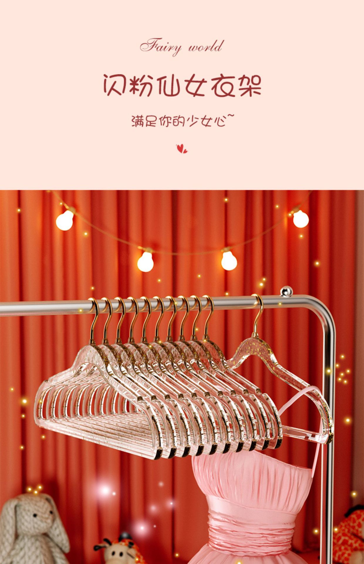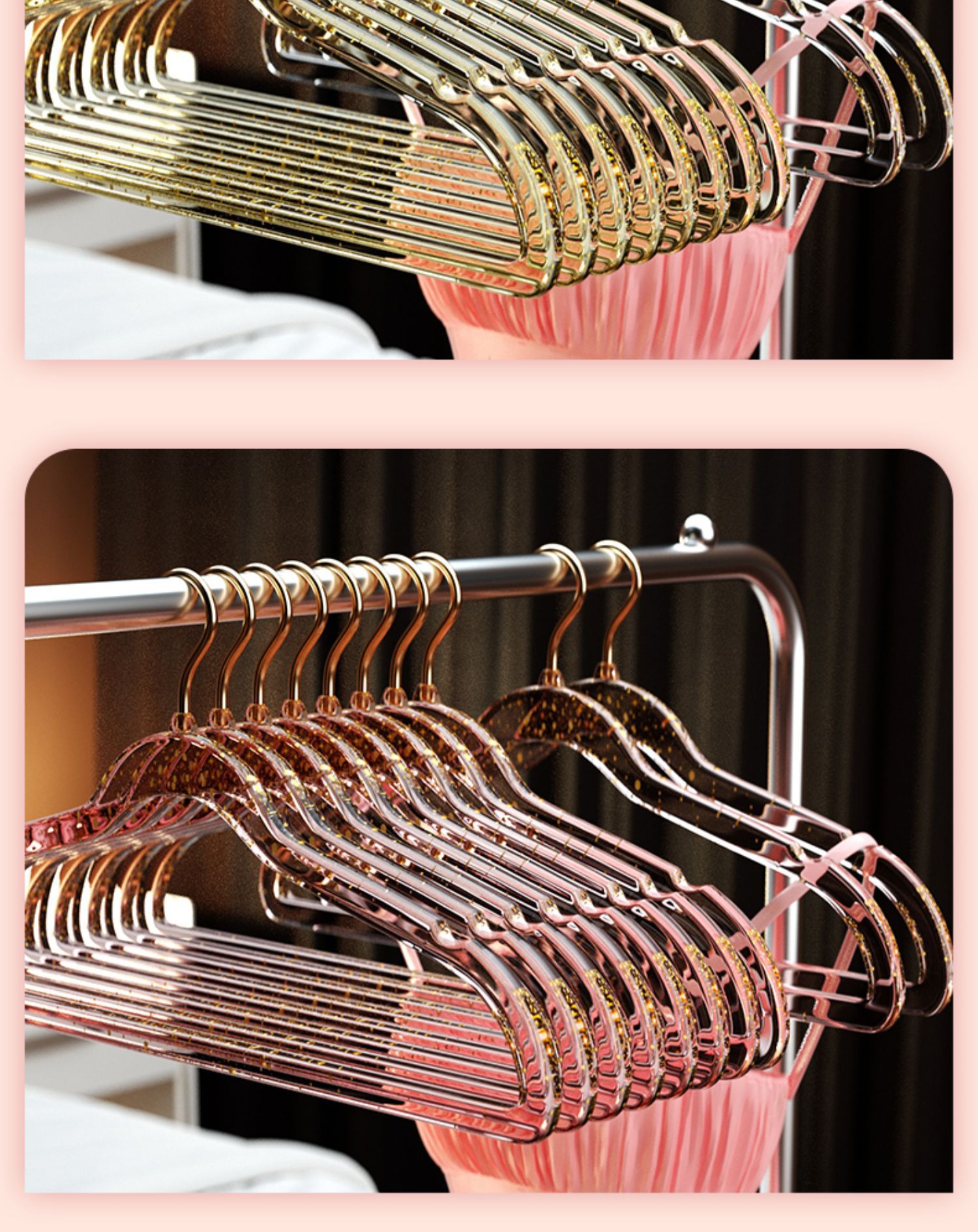 • 10개#핑크 글리터 골드 후크 아크릴 옷걸이