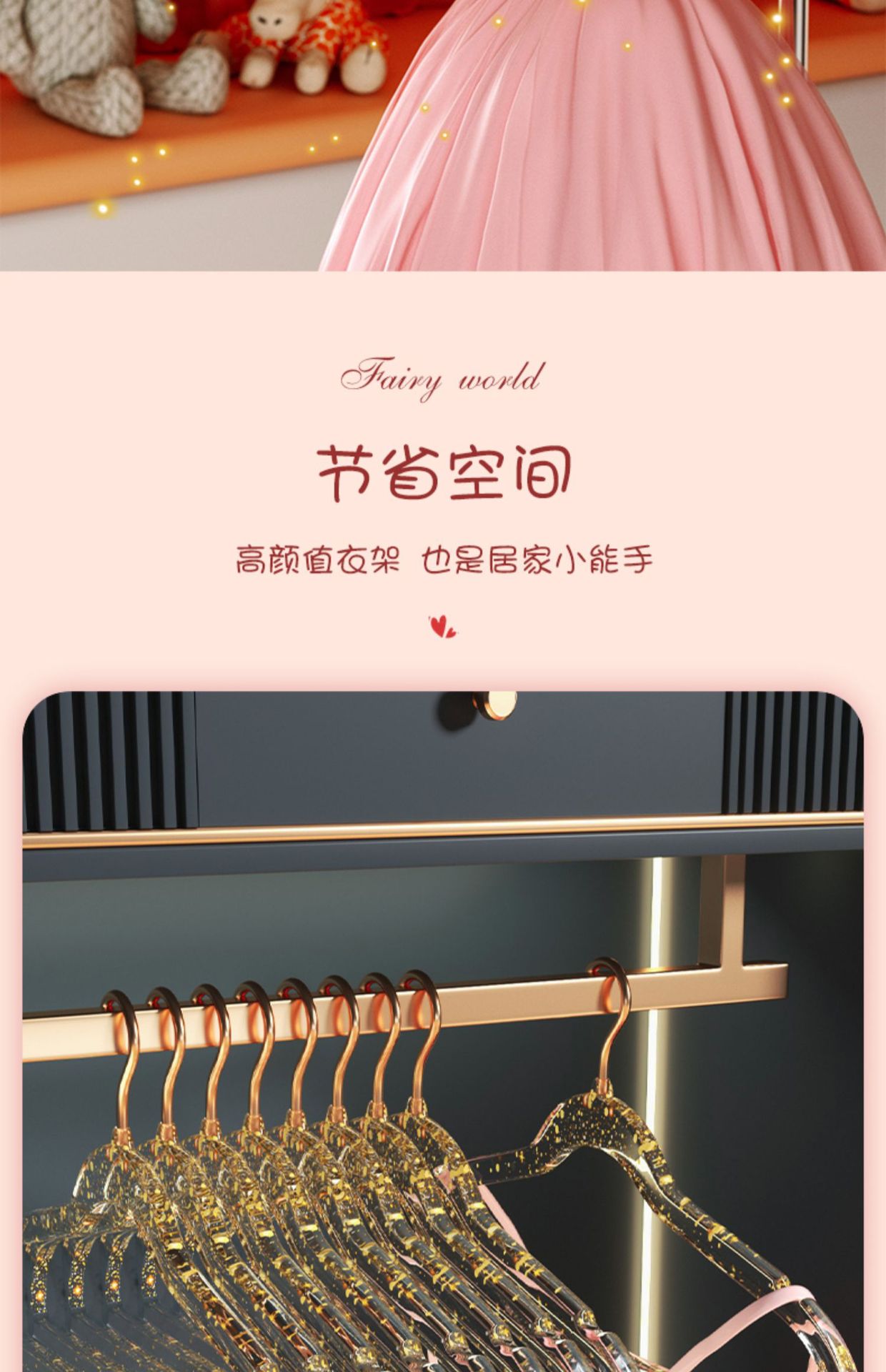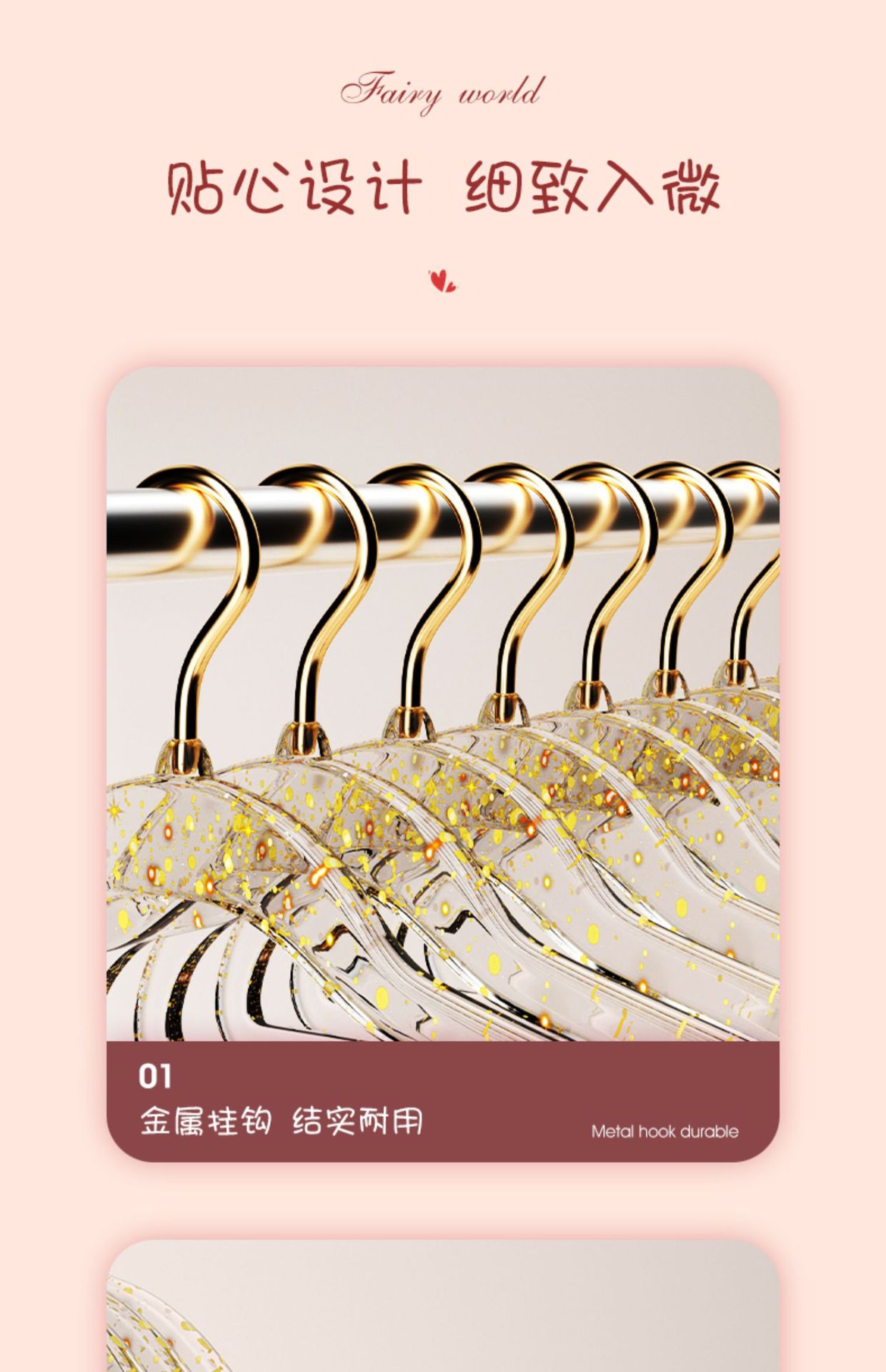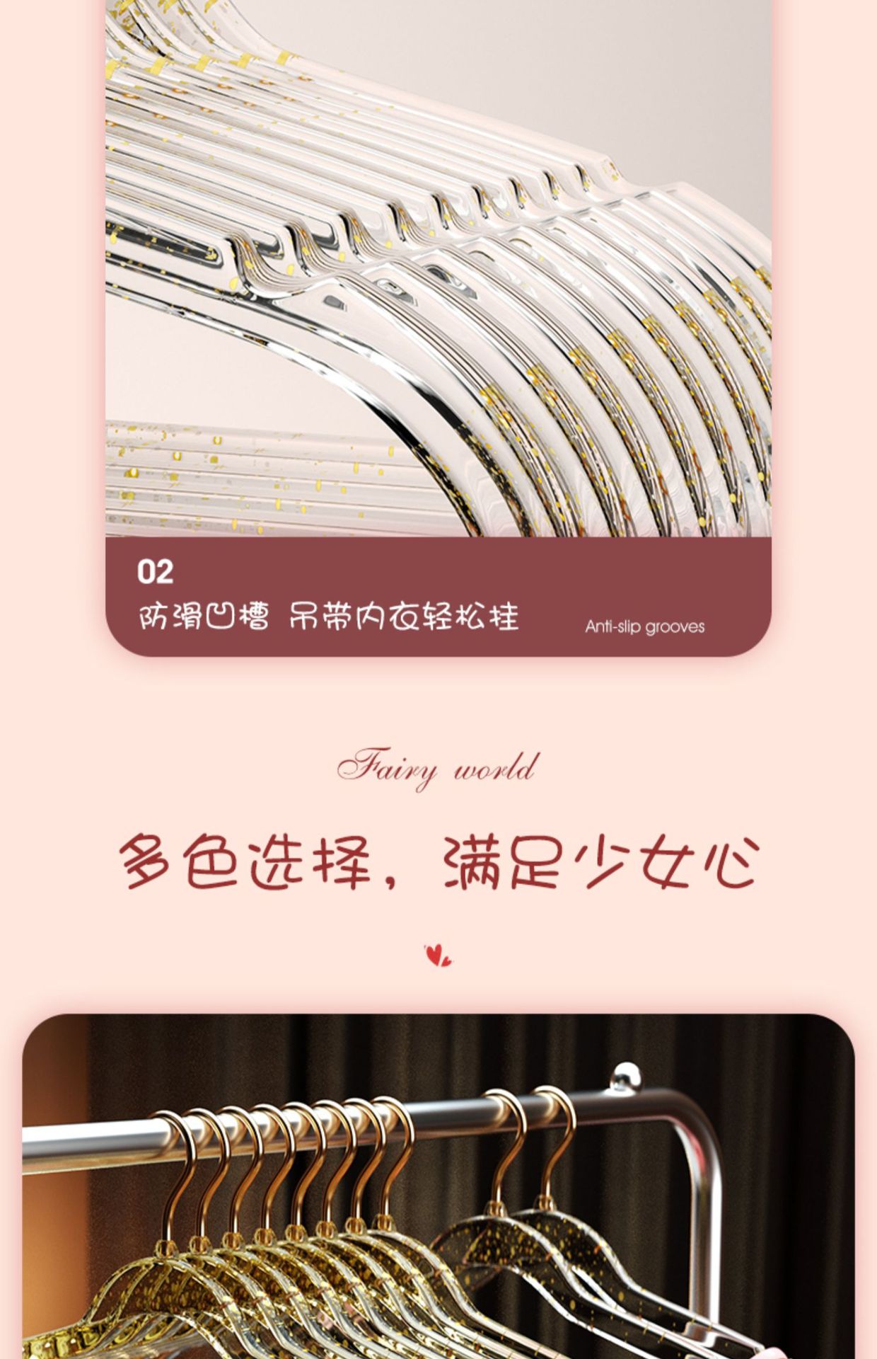 • 10개#핑크 글리터 골드 후크 아크릴 옷걸이
