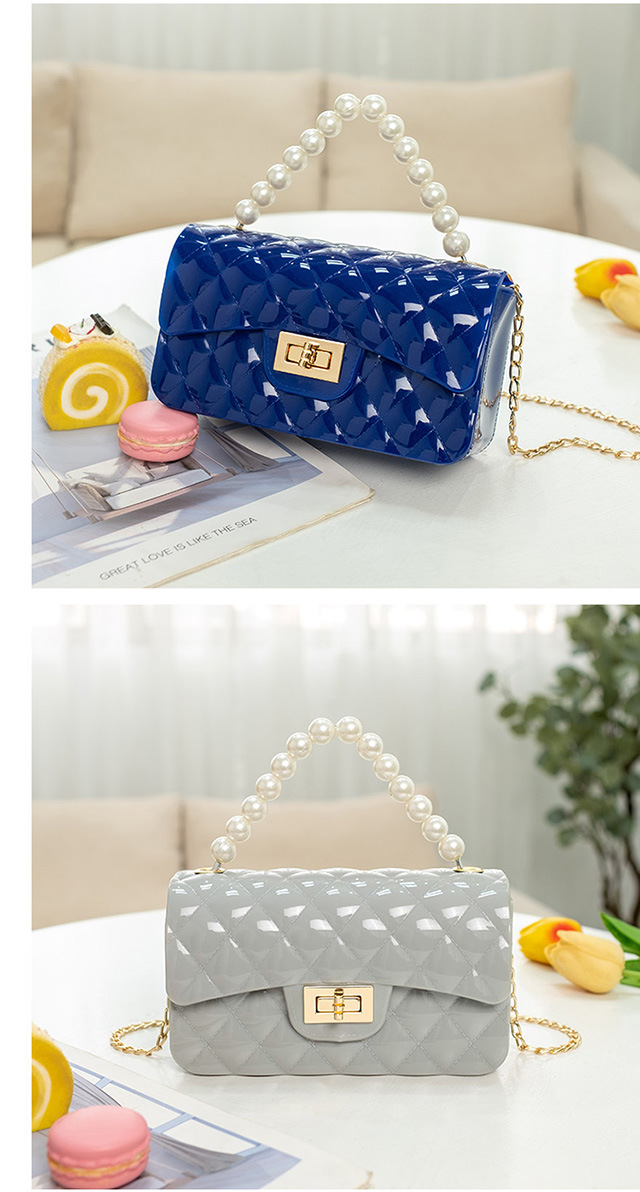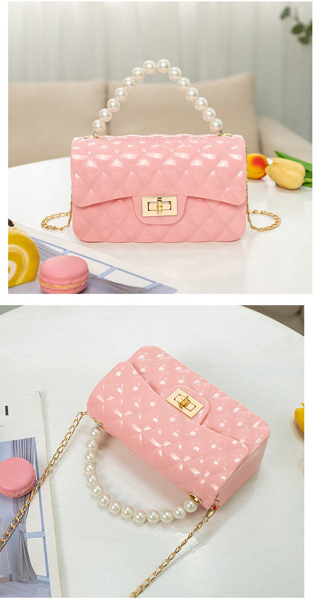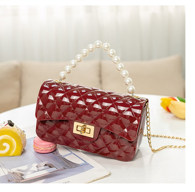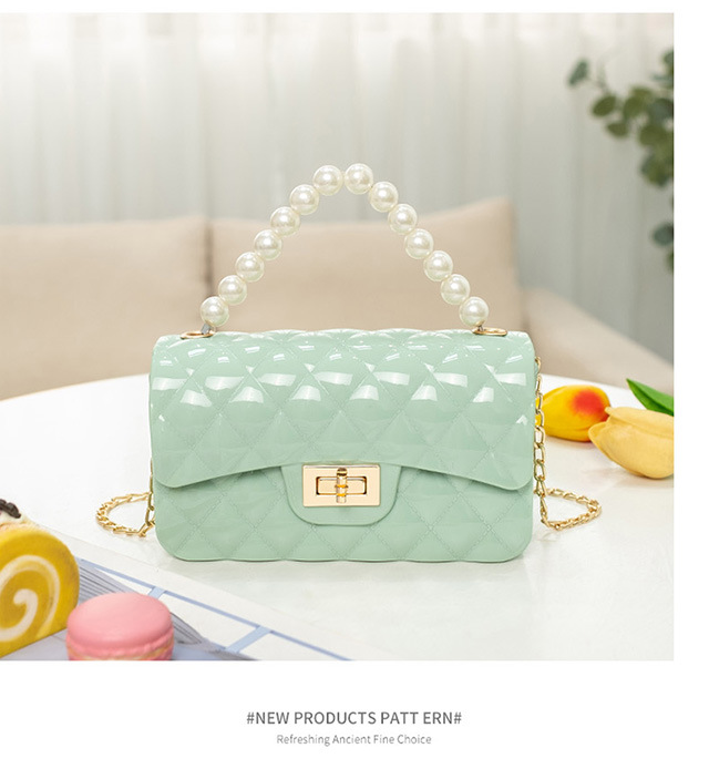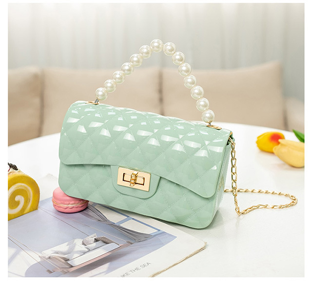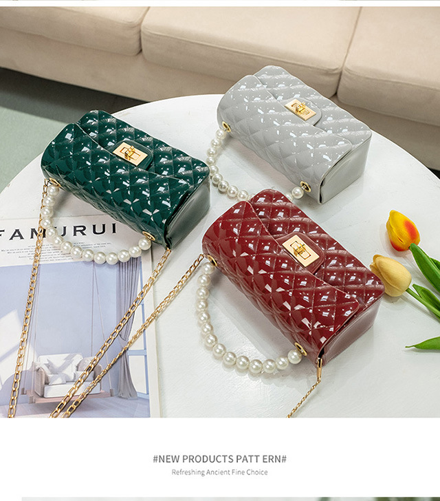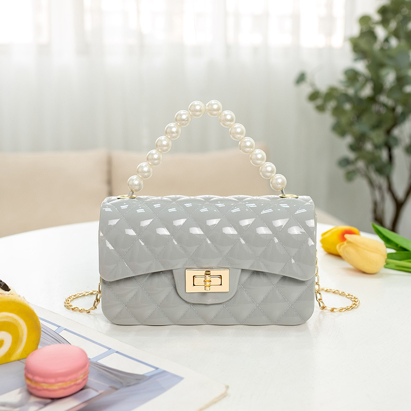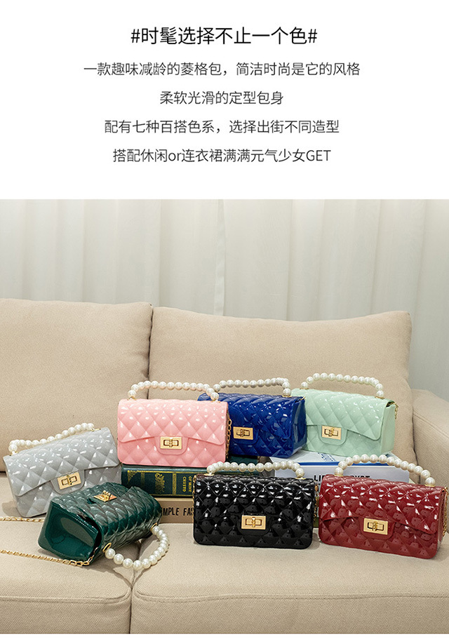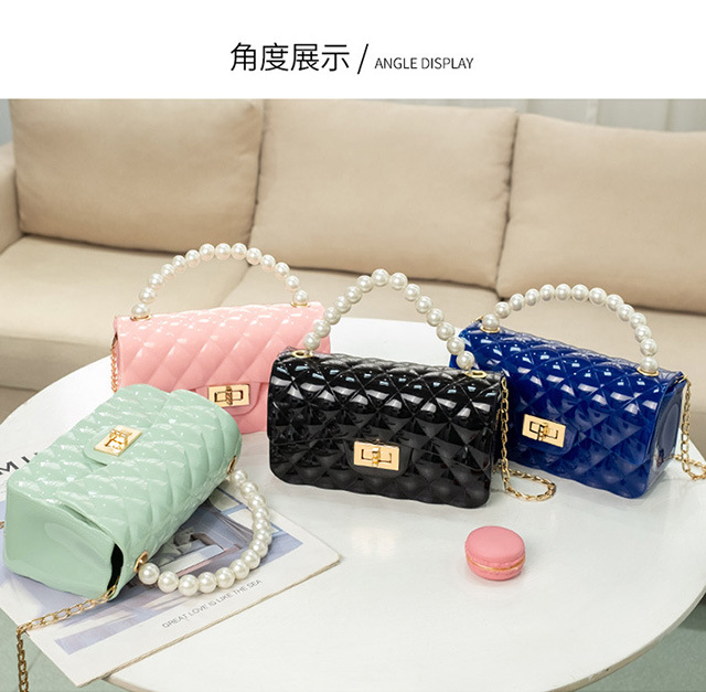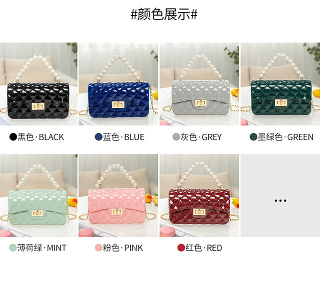 여성 젤리 가방 2024 가방 국경 저렴한 도매 작은 사각형 가방 진주 휴대용 메신저 가방 실리콘 가방스토어 가기