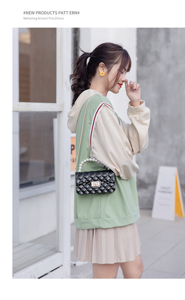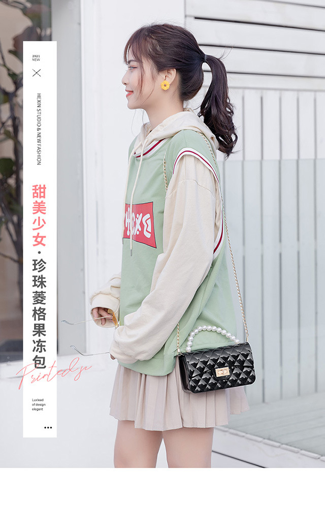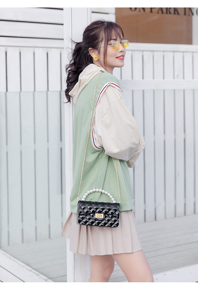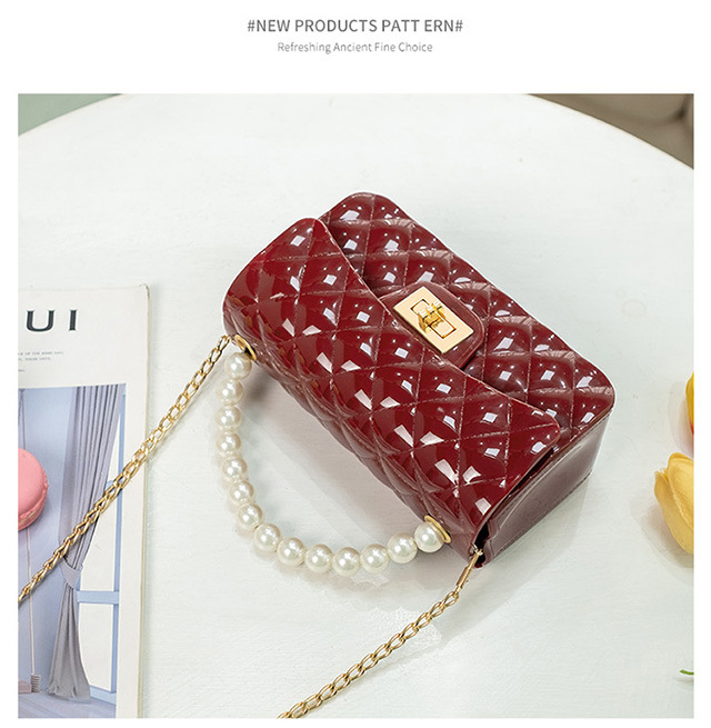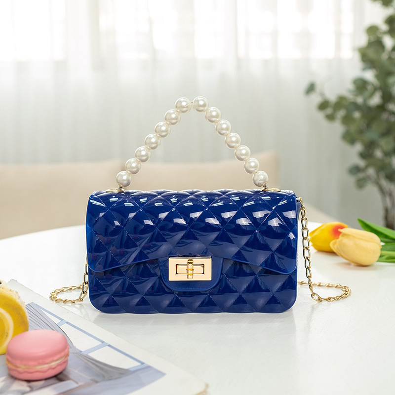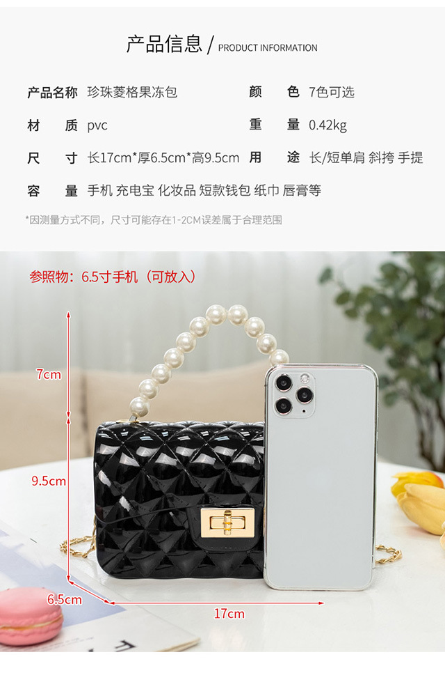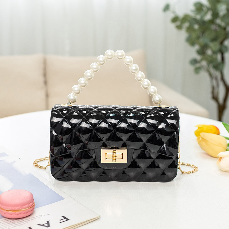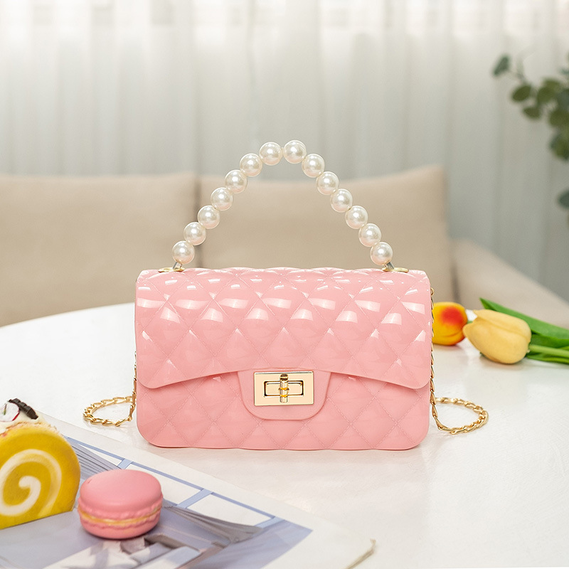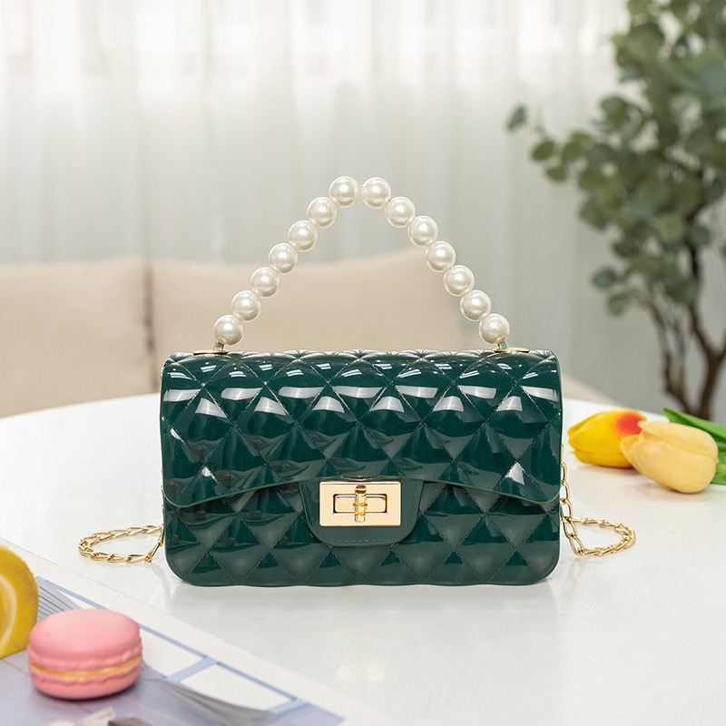 여성 젤리 가방 2024 가방 국경 저렴한 도매 작은 사각형 가방 진주 휴대용 메신저 가방 실리콘 가방스토어 가기