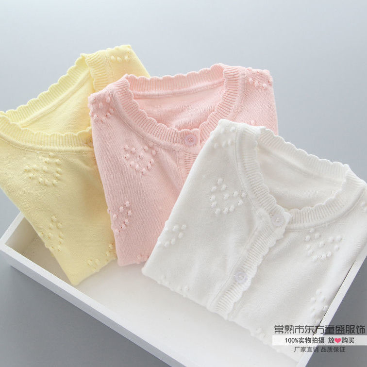 여아용 카디건 어린이 봄과 여름 얇은 순수 에어컨 셔츠 외부 착용 여자 셔츠 아기의 봄과 가을 코트스토어 가기