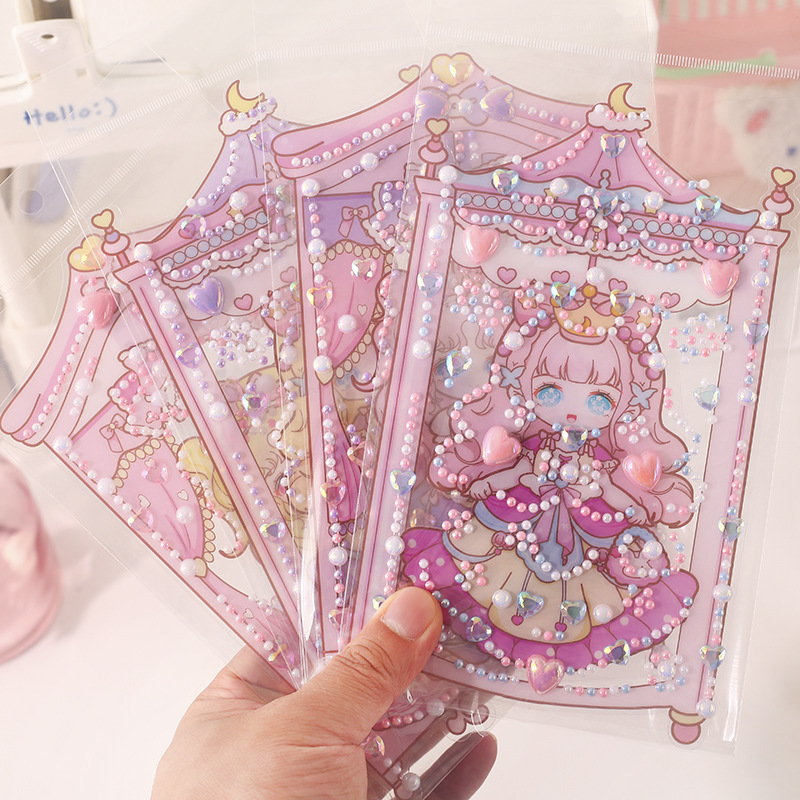 벨 공주 밝은 카드 다이아몬드 스티커 공주 보석 스티커 크리스탈 다이아몬드 스티커 어린이 만화 보상 구 카드 스티커스토어 가기
