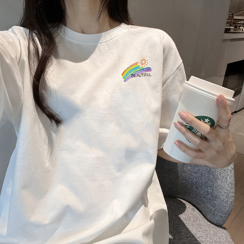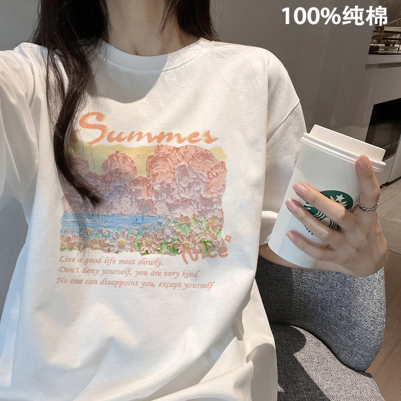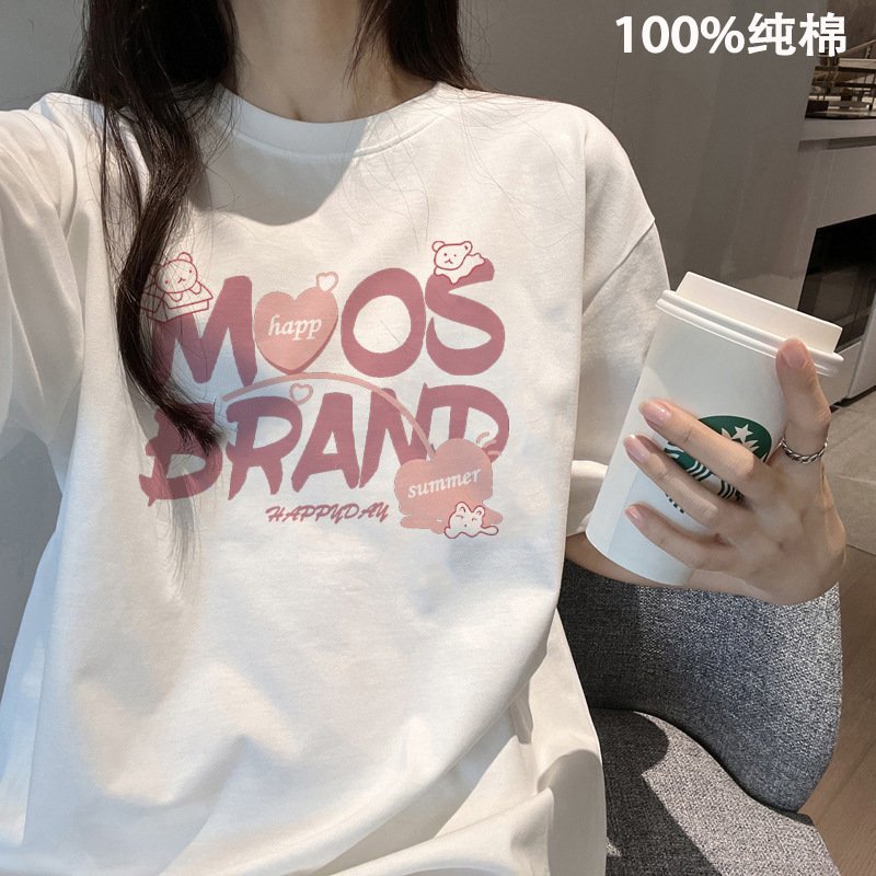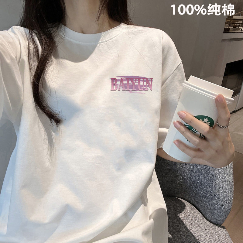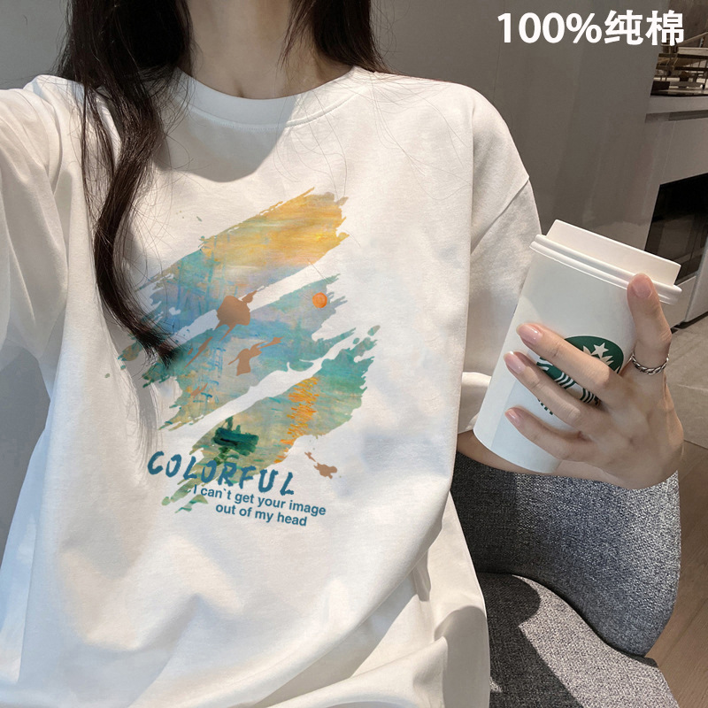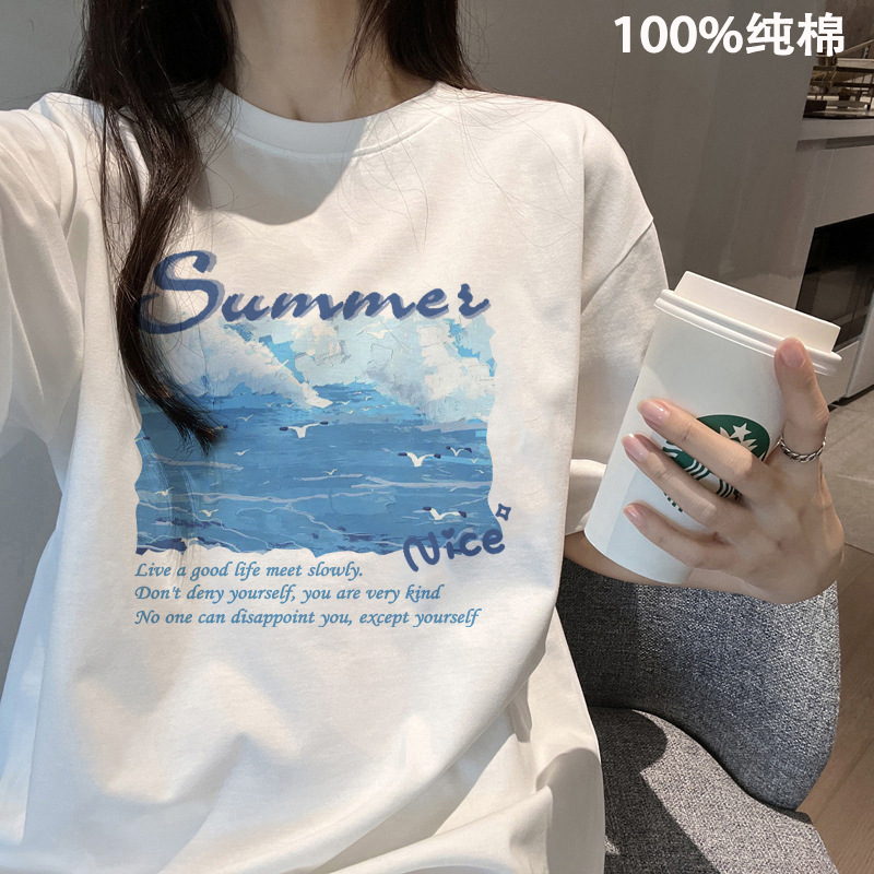 여름 어깨 새로운 틈새 크루 넥 풀 사이즈 반팔 티셔츠 여성 대학 스타일 슬리밍 레트로베이스 셔츠 트렌디