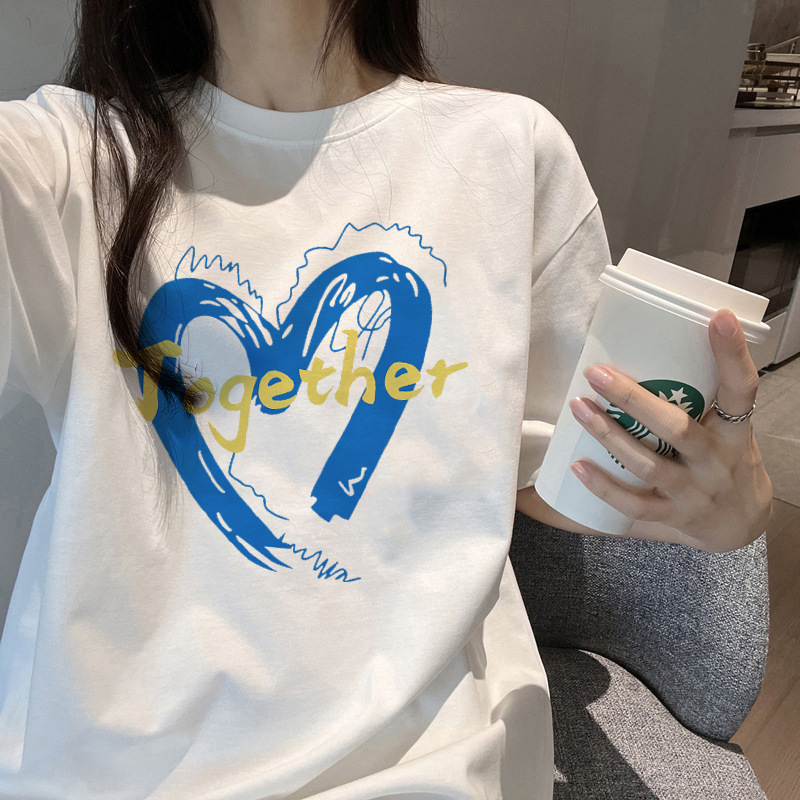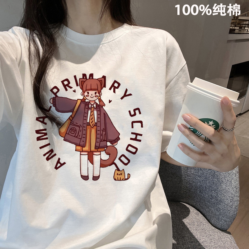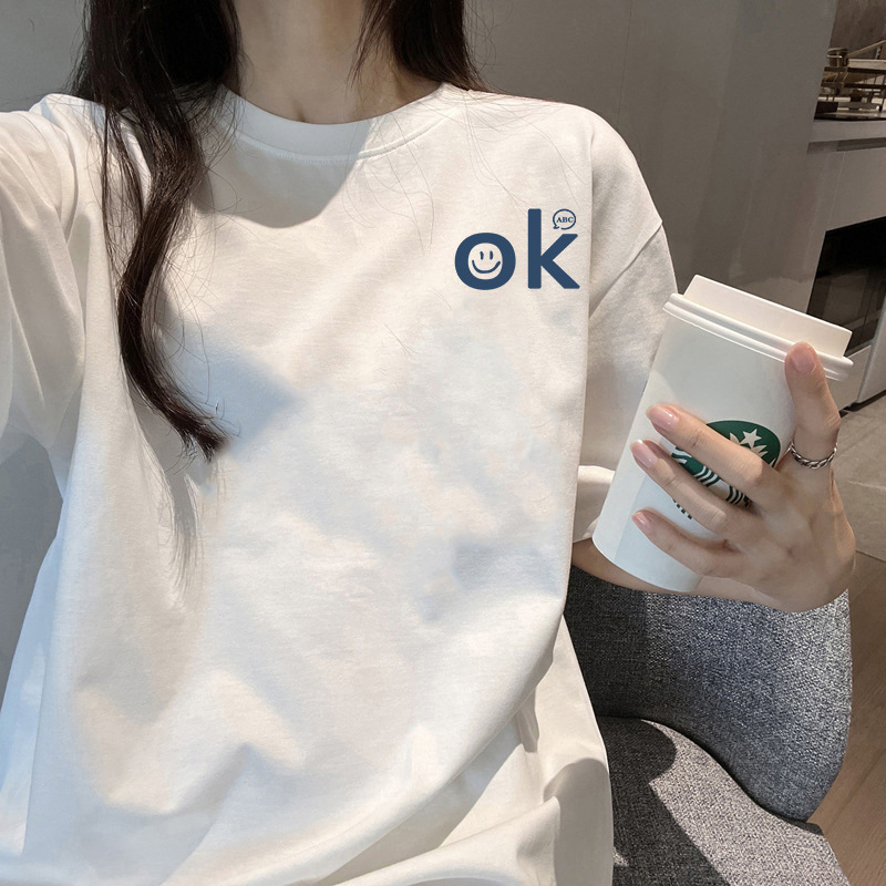 여름 어깨 새로운 틈새 크루 넥 풀 사이즈 반팔 티셔츠 여성 대학 스타일 슬리밍 레트로베이스 셔츠 트렌디스토어 가기