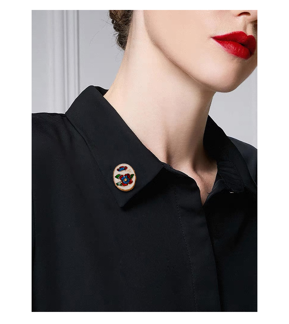 신선한 유약 여름 셔츠 칼라 핀 액세서리 여성 패션 라인석 꽃 버클 배지 눈부심 방지 코세이지스토어 가기
