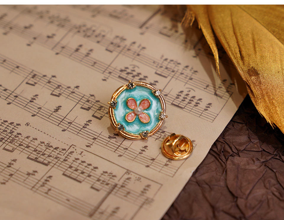 • 둥근 네 잎 꽃 칼라 핀 버클 스카이 블루