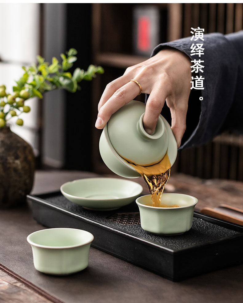 家用功夫茶具套装一盖碗二杯简约泡茶会客陶瓷喝茶茶杯干泡茶满和