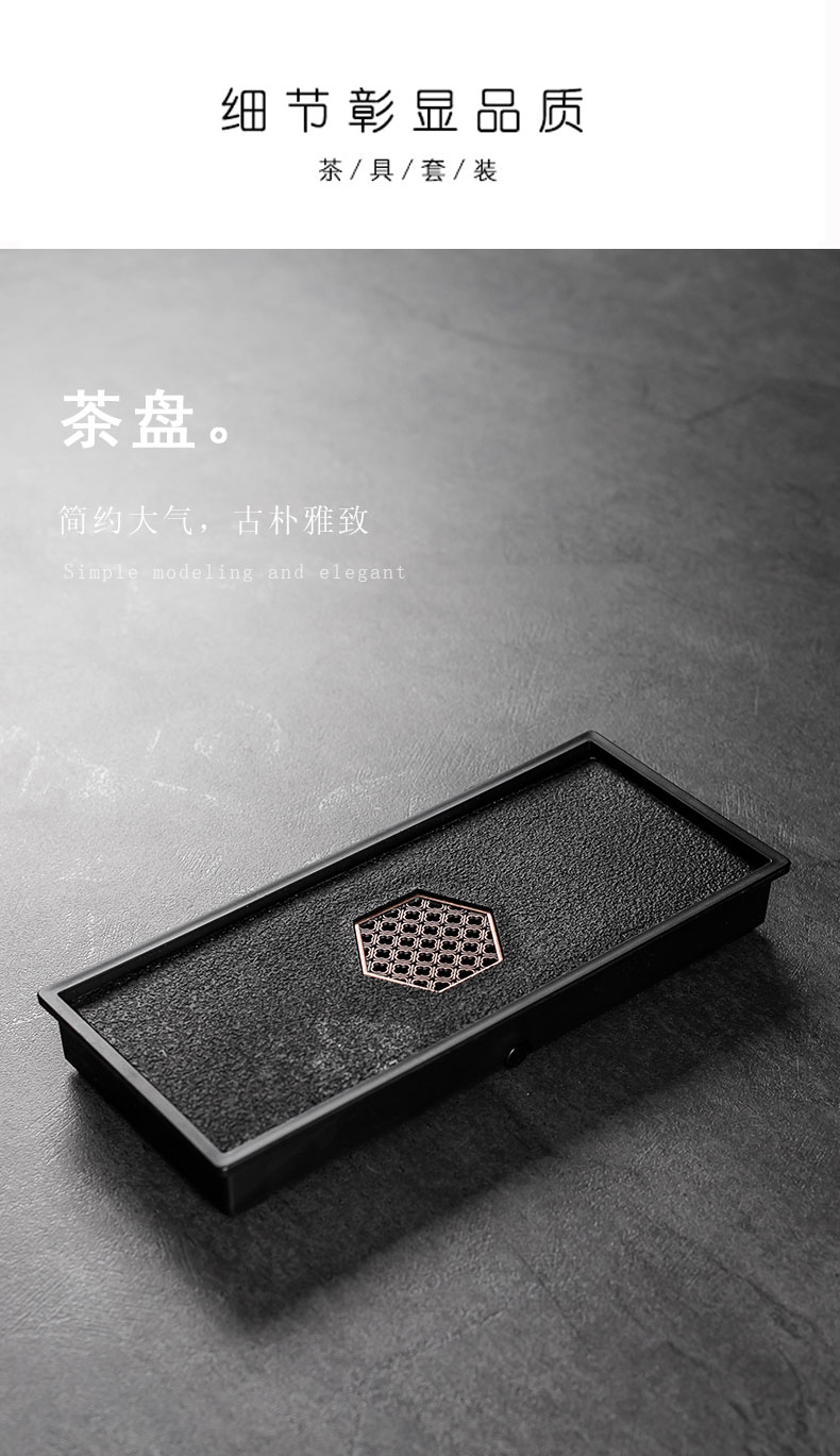 • 黑紫砂一盖碗二杯+六角窗花黑盘✦