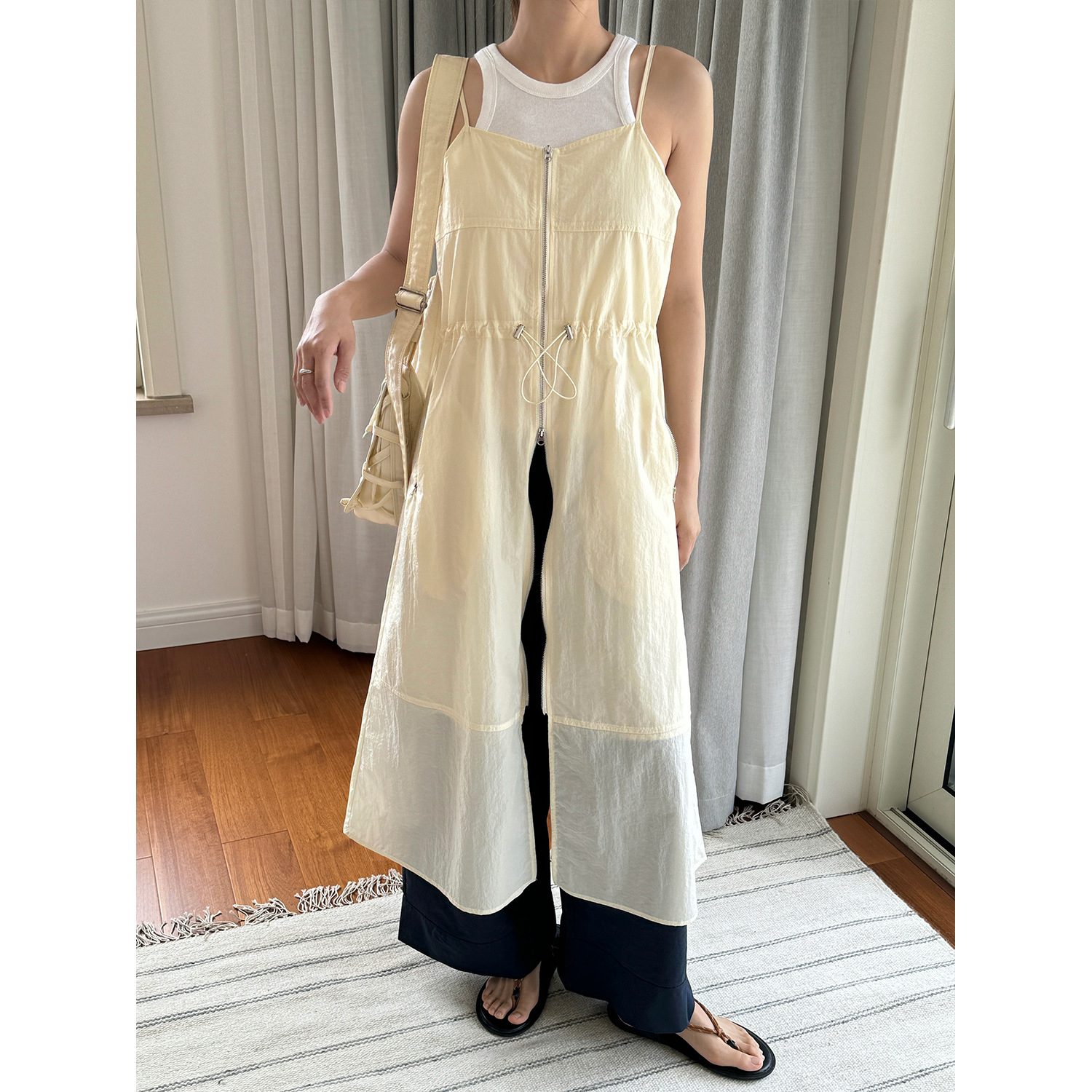 루푸 여름 새로운 한국식 게으른 캐주얼 지퍼 슬림 핏 허리 편안한 캐주얼 원피스 여성용 슬링 원피스