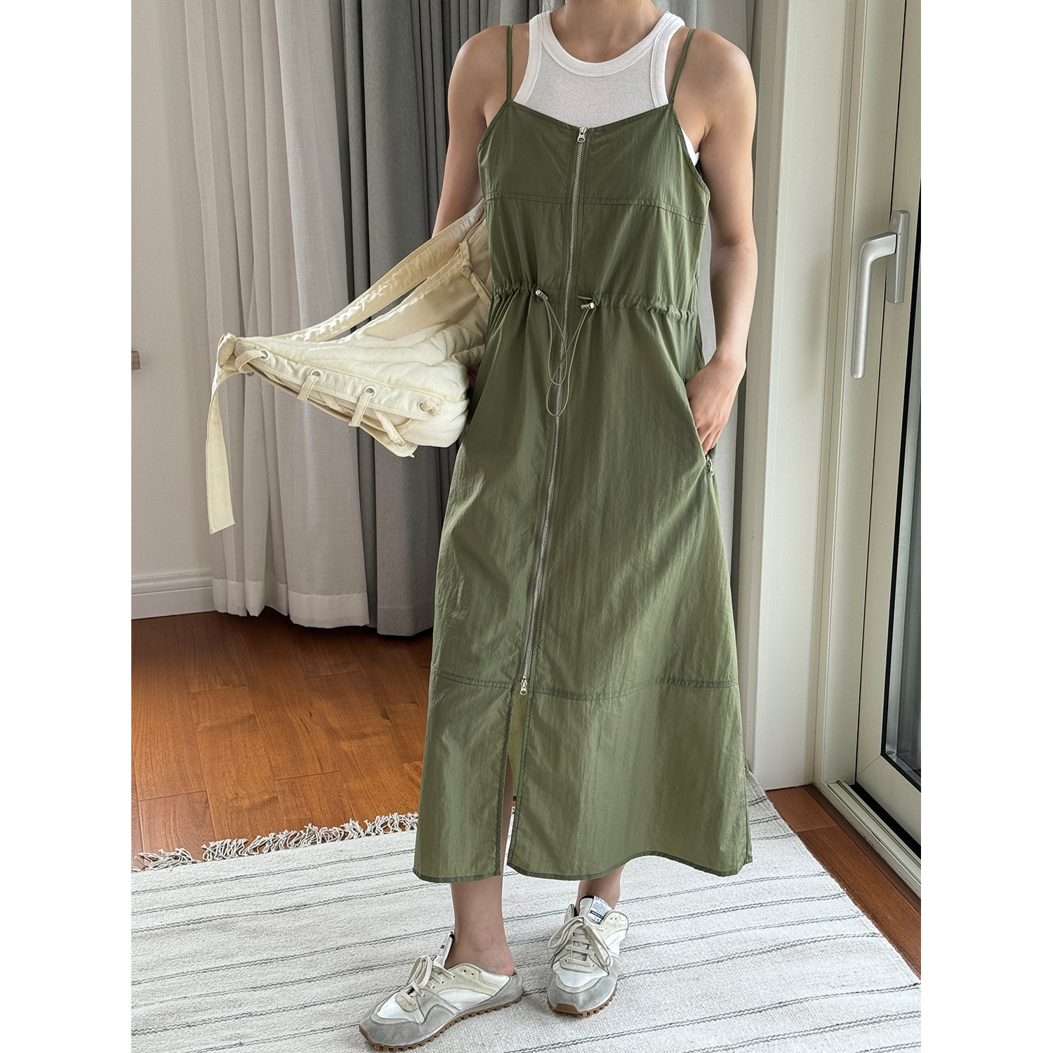 루푸 여름 새로운 한국식 게으른 캐주얼 지퍼 슬림 핏 허리 편안한 캐주얼 원피스 여성용 슬링 원피스스토어 가기