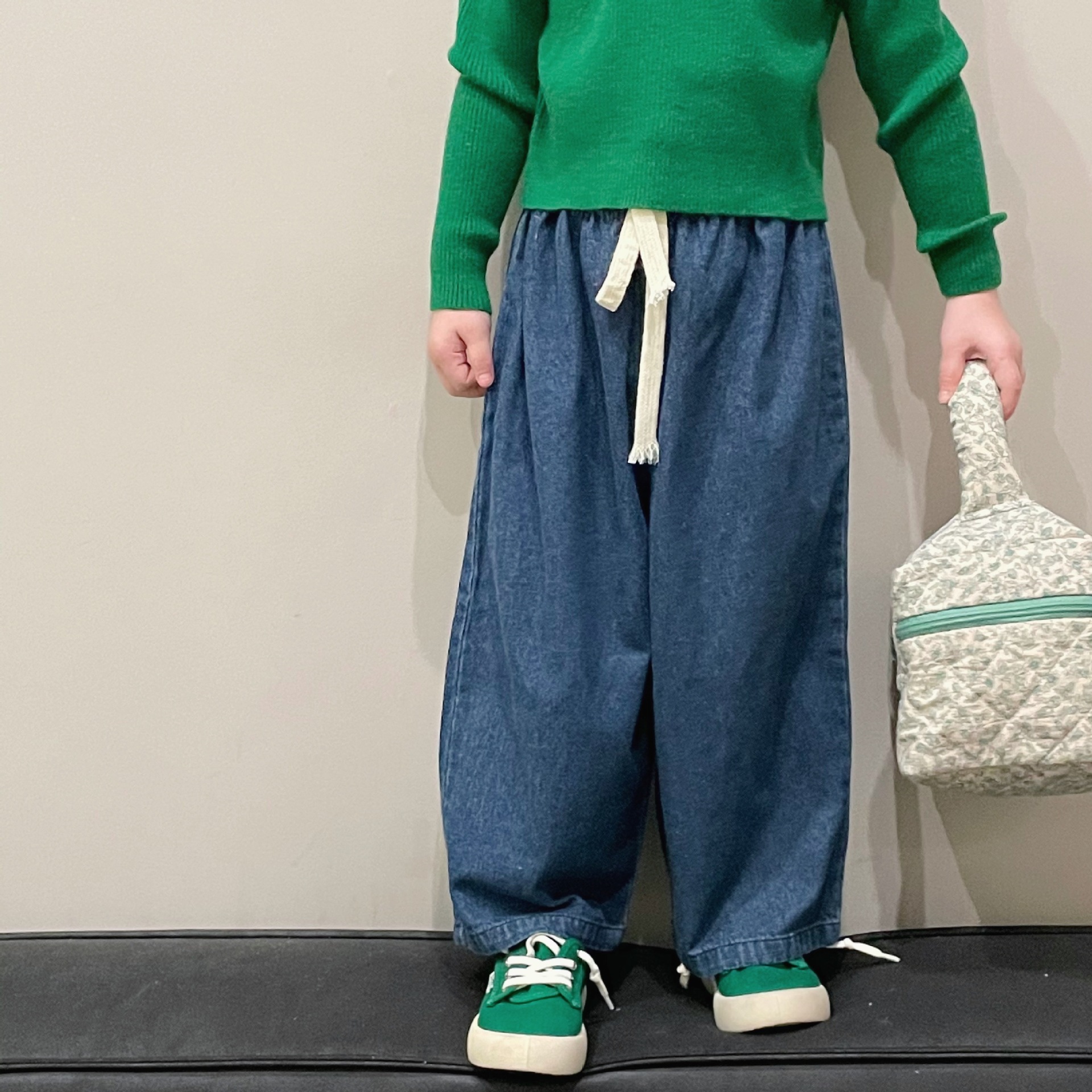 韩国童装2022韩版春秋季新款男童女童中小童可爱牛仔阔腿裤童裤
