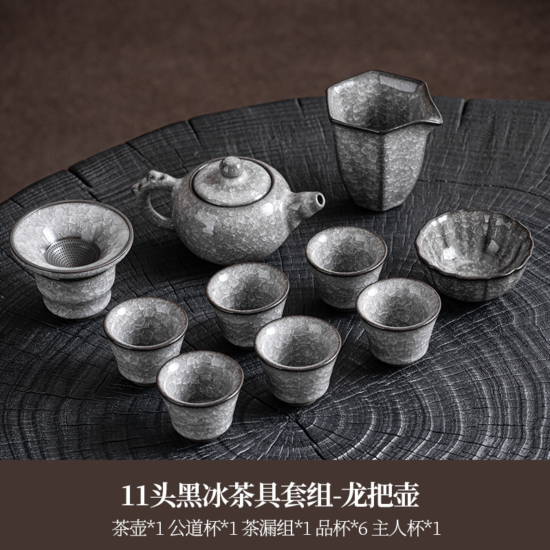 A5L 블랙 아이스 쿵푸 티 세트 티 컵 세트 가정용 아이스 플라워 오피스 세라믹 티 포트 커버 그릇 라이트 럭셔리스토어 가기