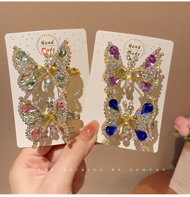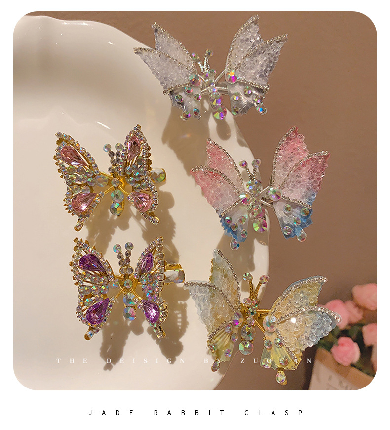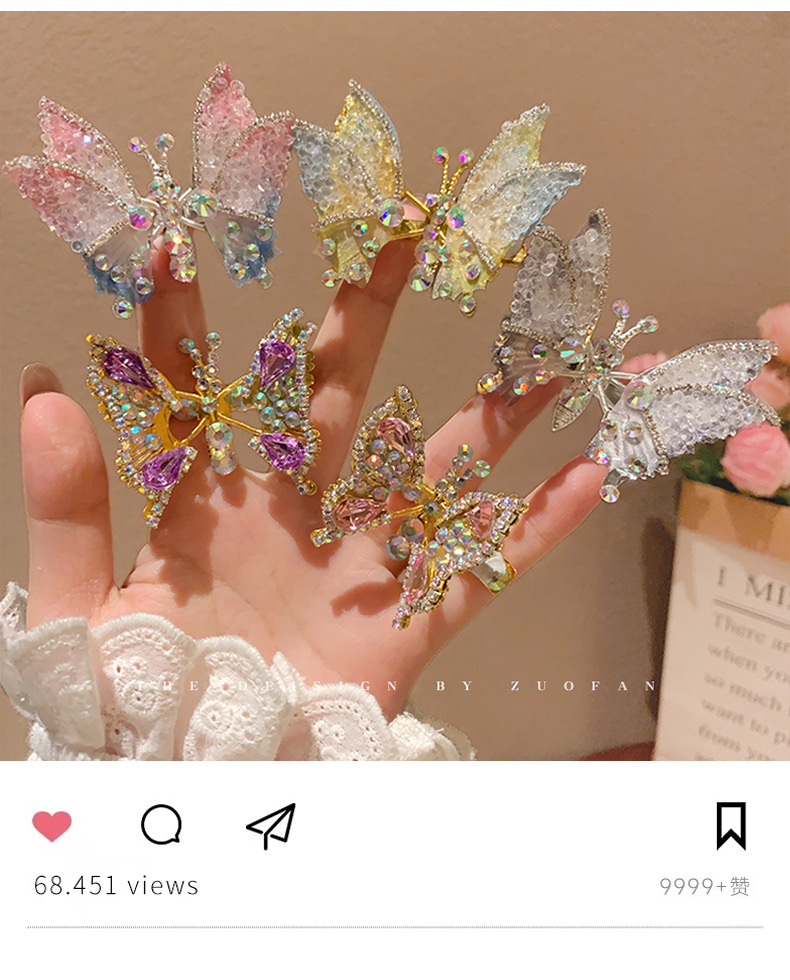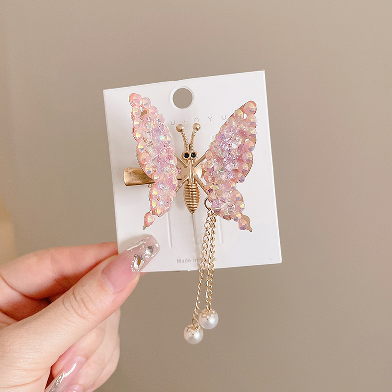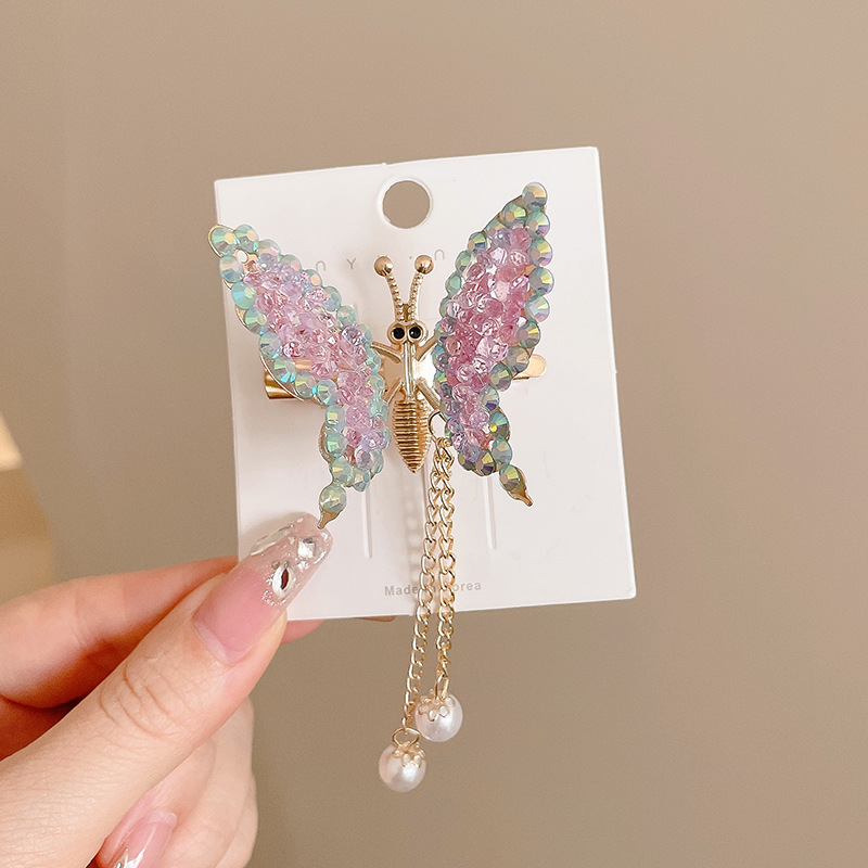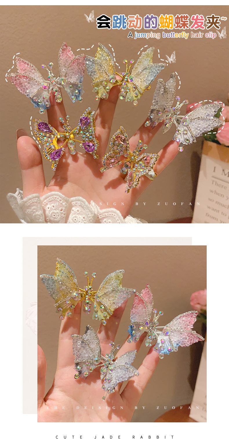어린이 헤어핀 움직일 수 있는 라인스톤 나비 헤어핀 플라잉 귀여운 헤드웨어 클립 사이드 클립 부러진 헤어 뱅이 클립