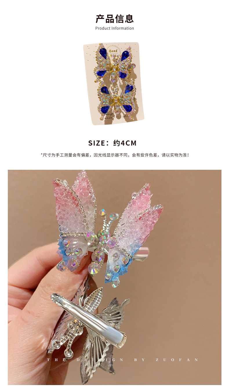 어린이 헤어핀 움직일 수 있는 라인스톤 나비 헤어핀 플라잉 귀여운 헤드웨어 클립 사이드 클립 부러진 헤어 뱅이 클립스토어 가기