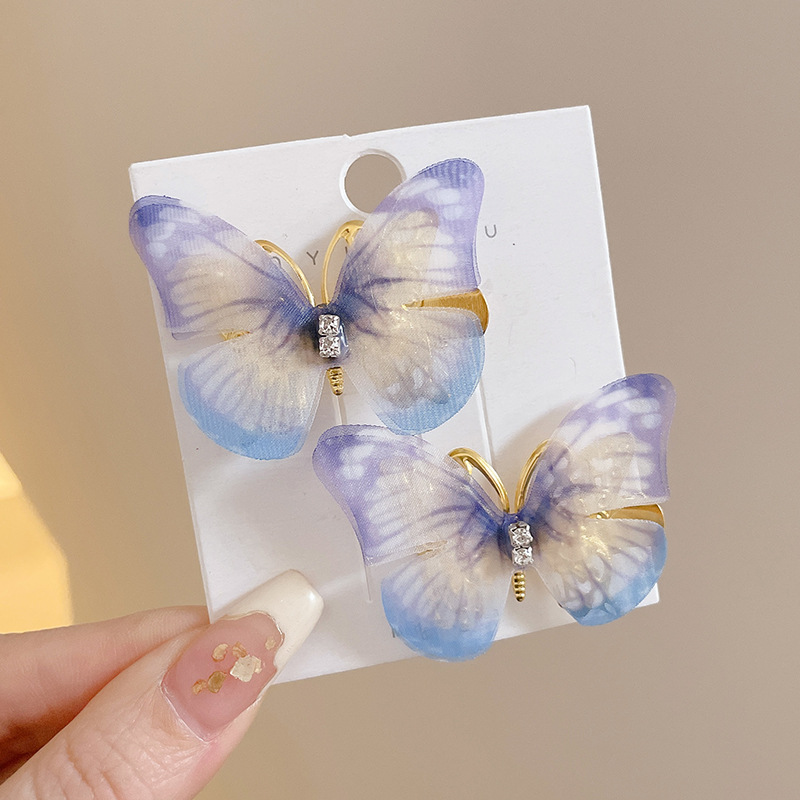• 10 # 블루 퍼플 그라디언트 나비 머리핀 1 쌍