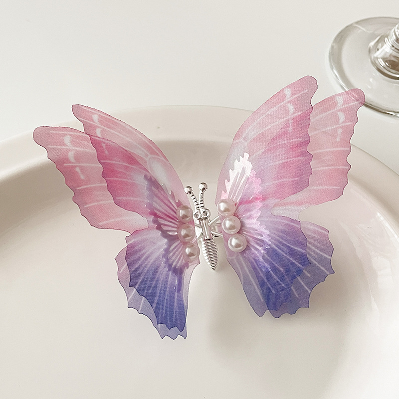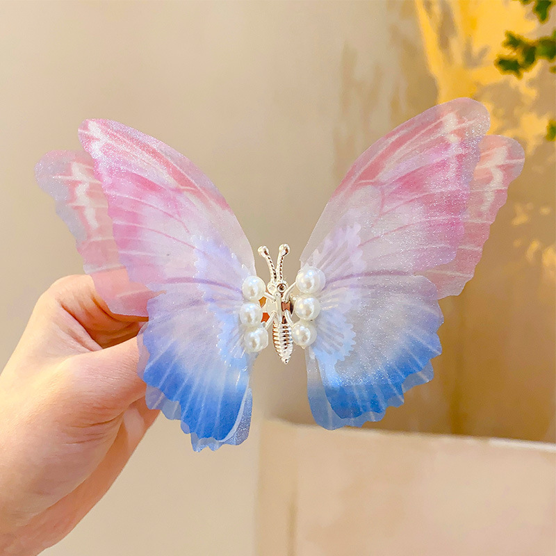 • 7 # 핑크 블루 그라디언트 나비 머리핀 1 쌍