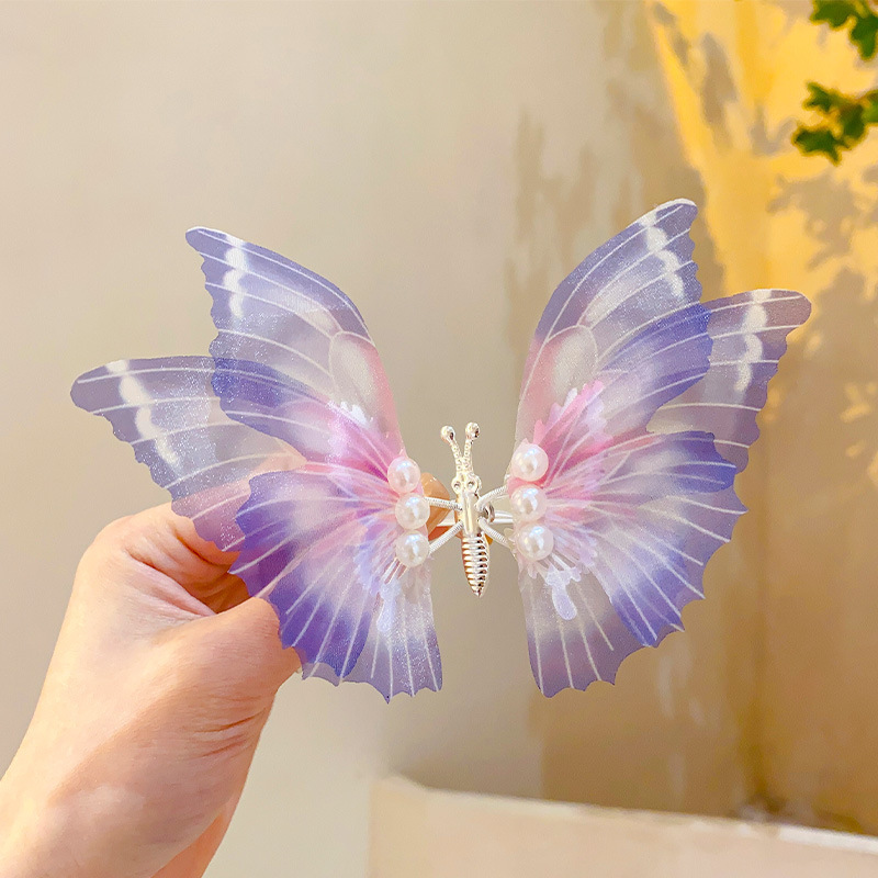 • 8 # 노란색 보라색 그라디언트 나비 머리핀 1 쌍