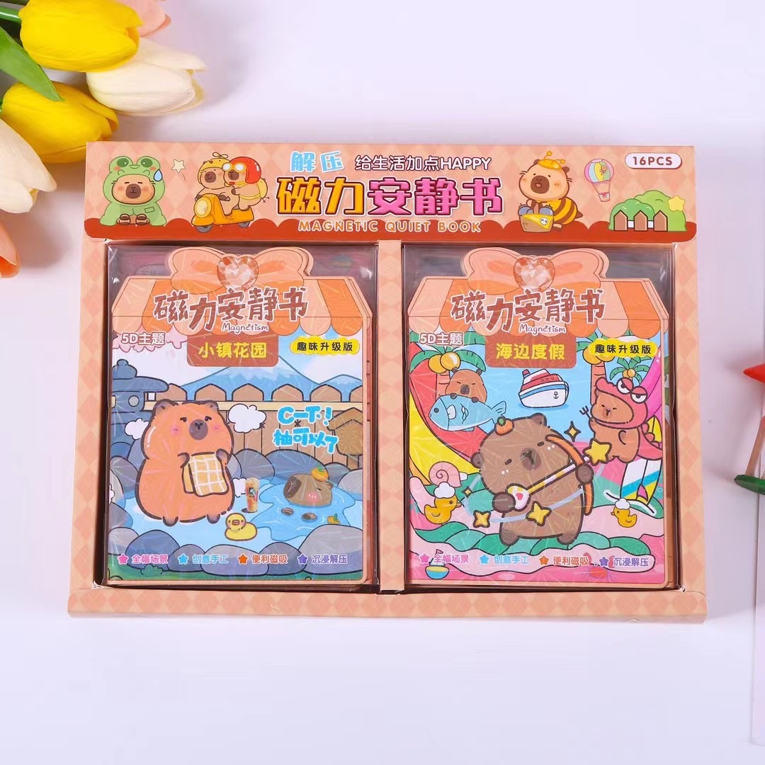 새로운 휴대용 자기 조용한 책 3 접힌 페이지 2 자기 흡입 책 16 박스 자기 변화 스티커 책스토어 가기