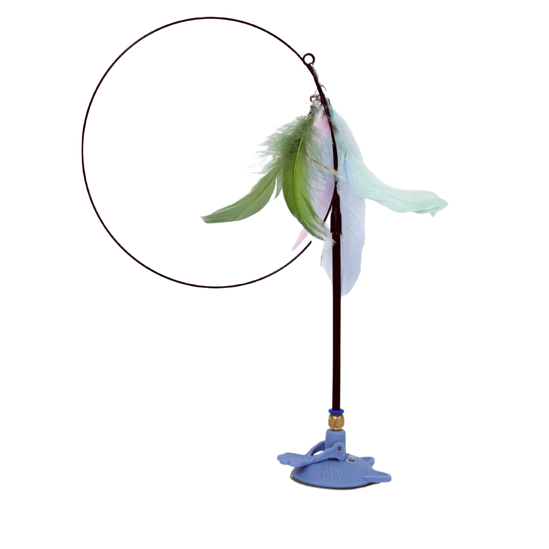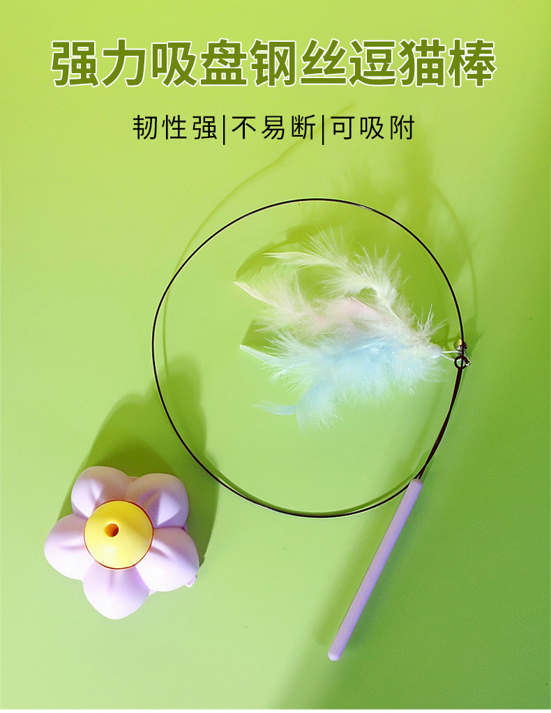 고양이 재미 스틱 강력한 흡입 컵 스틸 와이어 긴 막대 다채로운 깃털 재미 고양이 장난감 셀프 헤이 더러운 교체 고양이 장난감