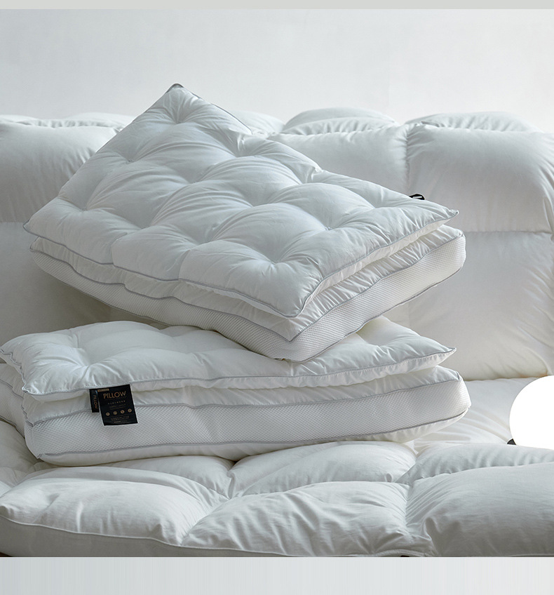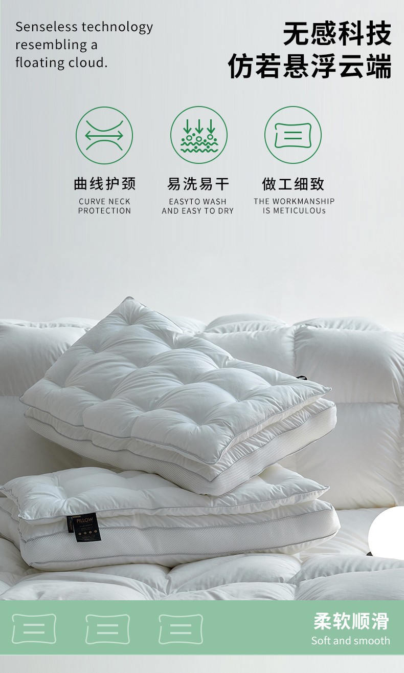 하이 엔드 호텔 베개 슈퍼 소프트 성인 높은 베개 소프트 실크 투인원 더블 베개 코어 깃털 벨벳 가정용 전체 머리스토어 가기