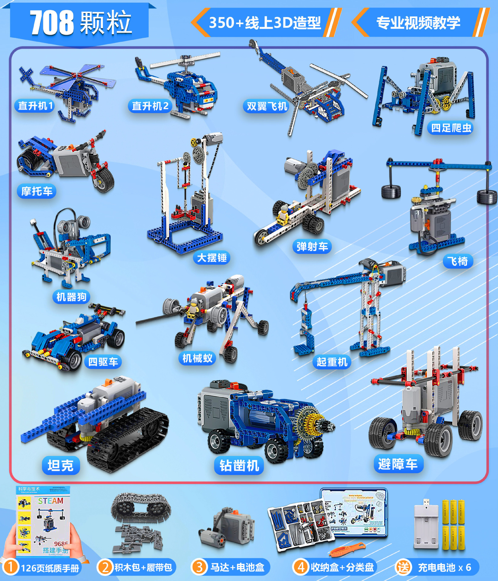 • [더블 모터 고급] 1033 입자 600 종류의 모양 충전 배터리 팩