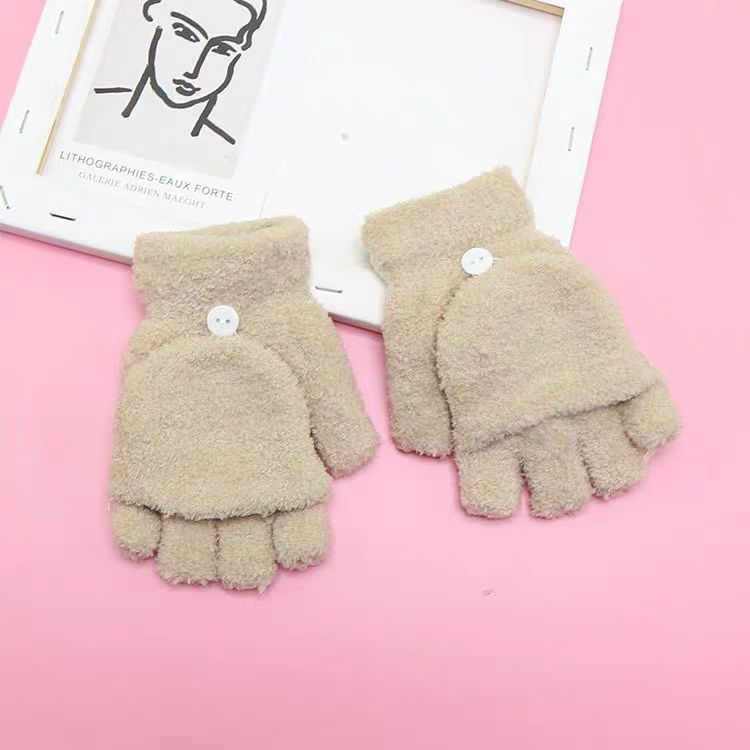 한국식 플립 장갑 귀여운 손가락 노출 이중 목적 장갑 니트 장갑 겨울 장갑 사이클링 반 손가락 장갑