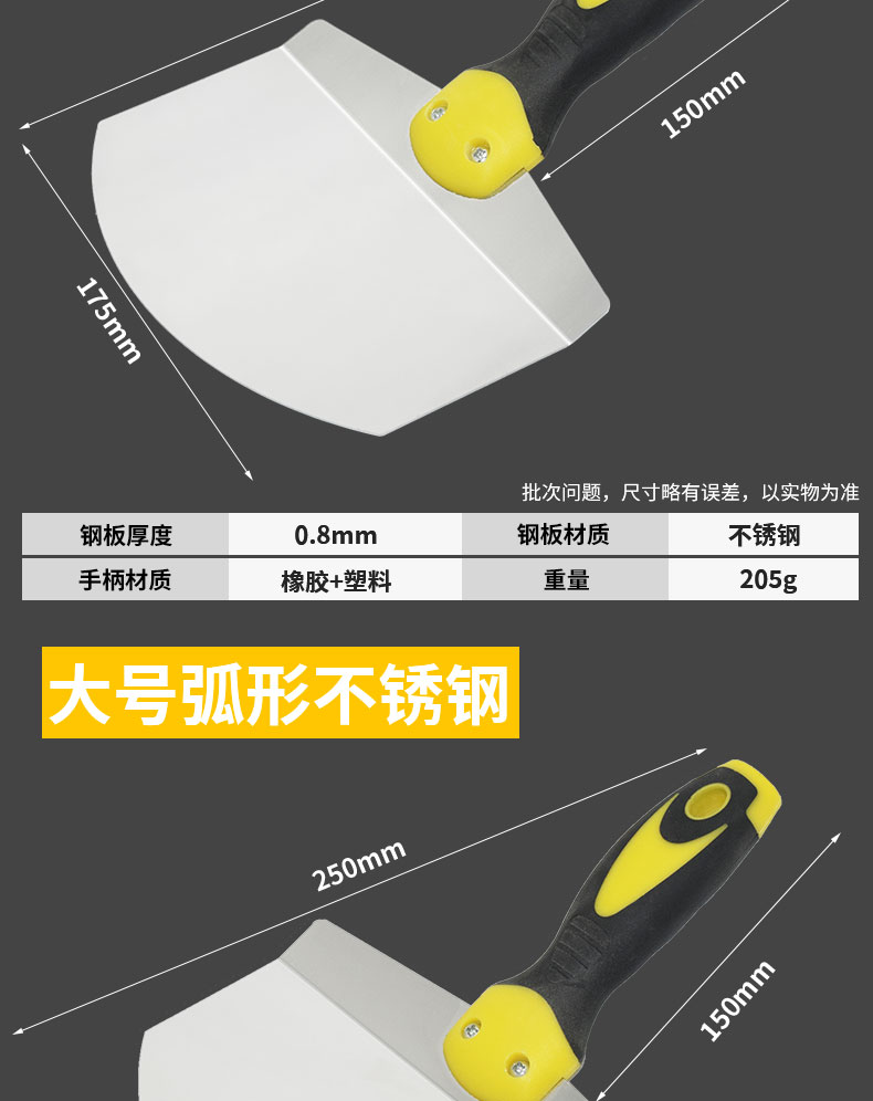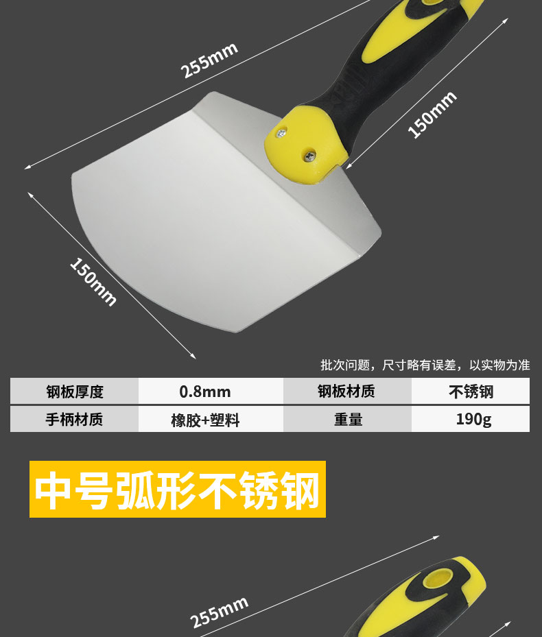스테인레스 스틸 곡선 페이스트 스크레이퍼, 반원형 로딩 삽, 버킷 도구, 회색 보드, 아크 삽, 오일 충전스토어 가기