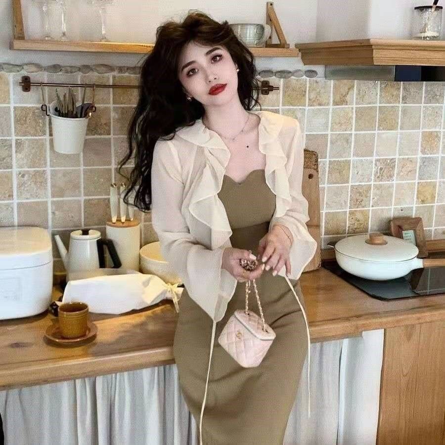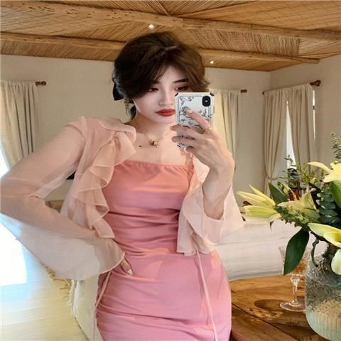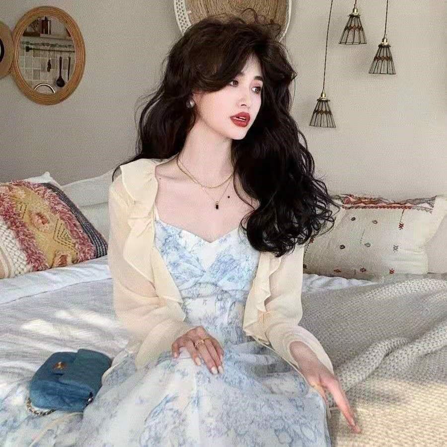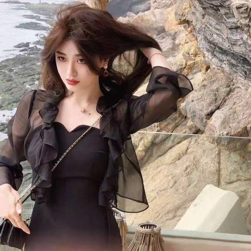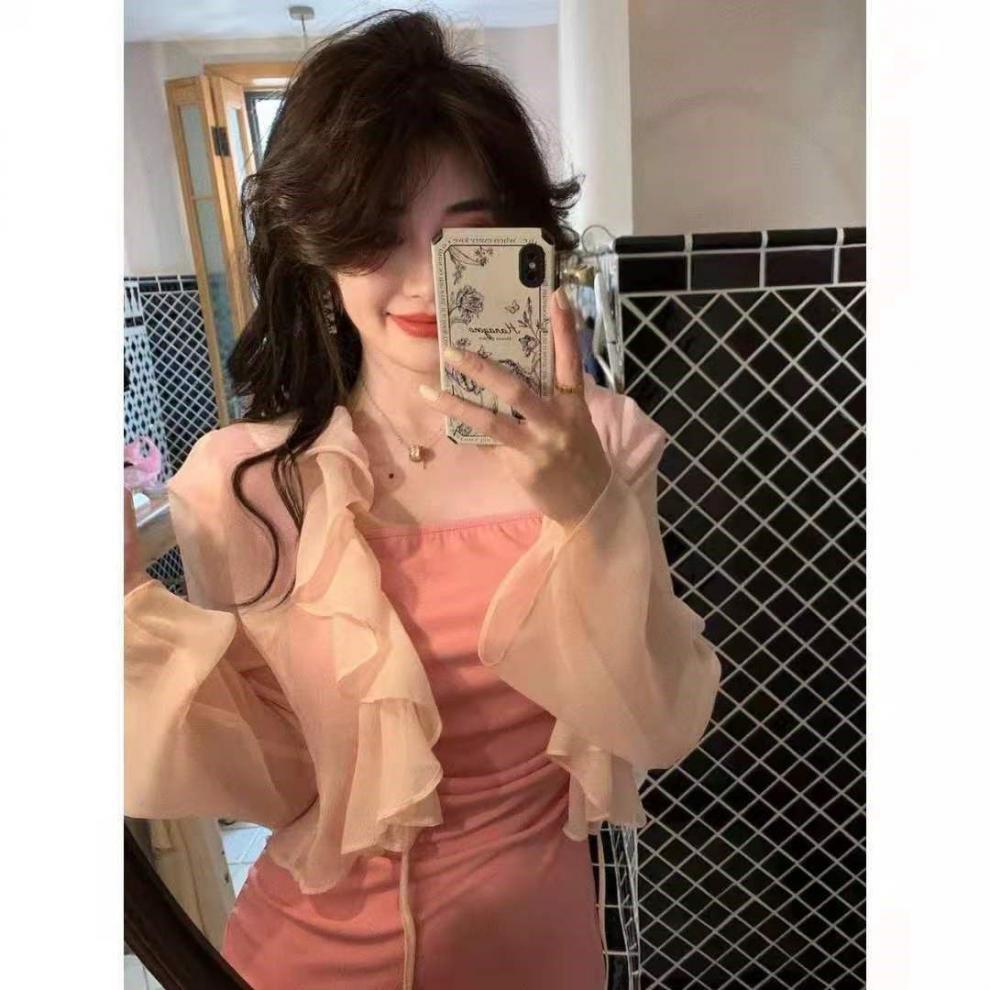 슈퍼 페어리 플라잉 슬리브 쉬폰 선스크린 러플, 레이스 업 여름 새로운 스타일 작은 코트 얇은 여성