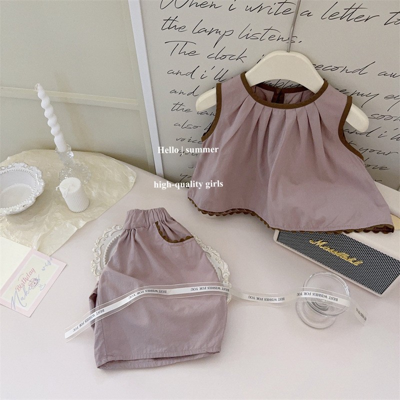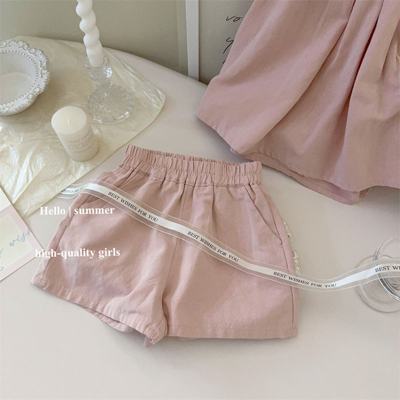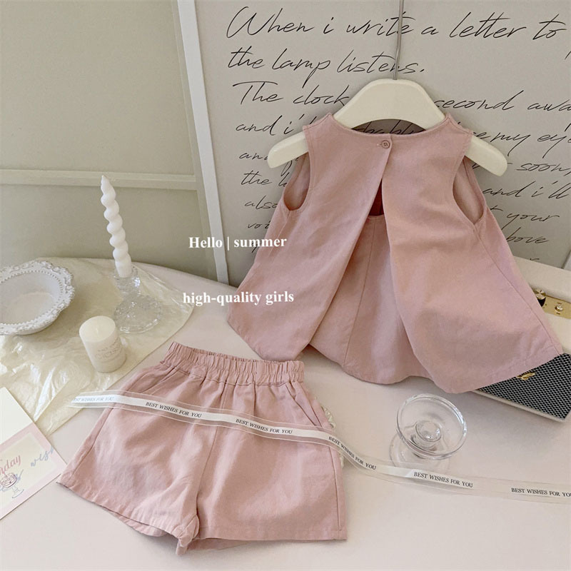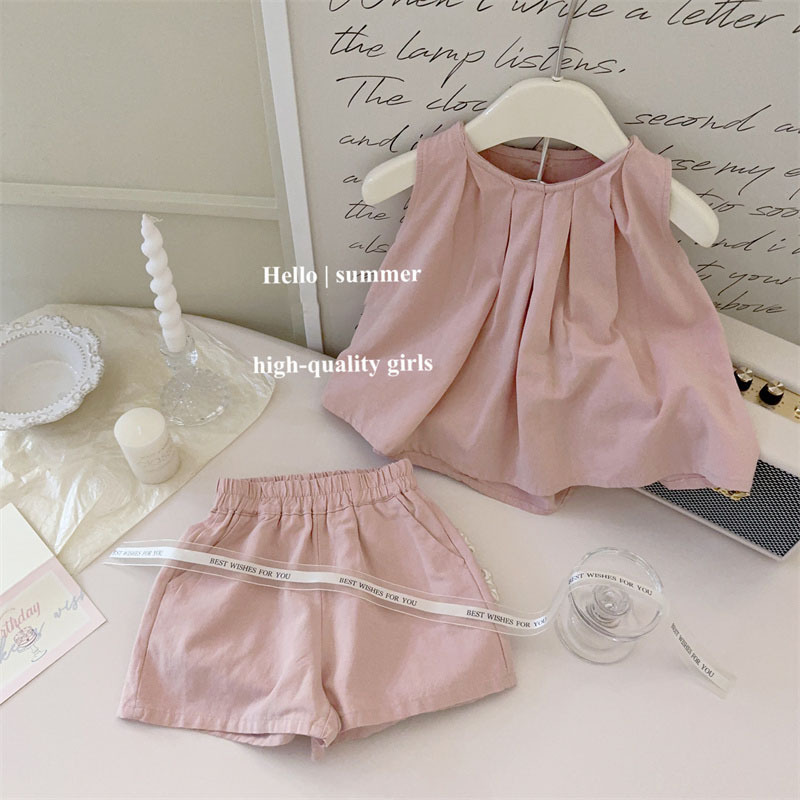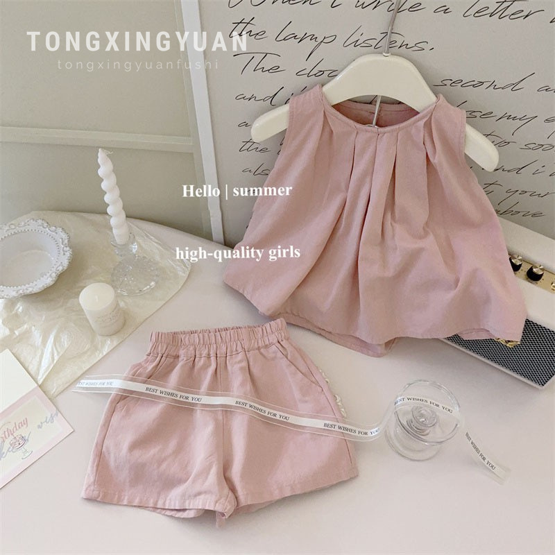 통 싱위안 한국 소녀의 반팔 세트 여름 새로운 세련된 여름 유행 어린이 조끼 반바지 투피스 세트