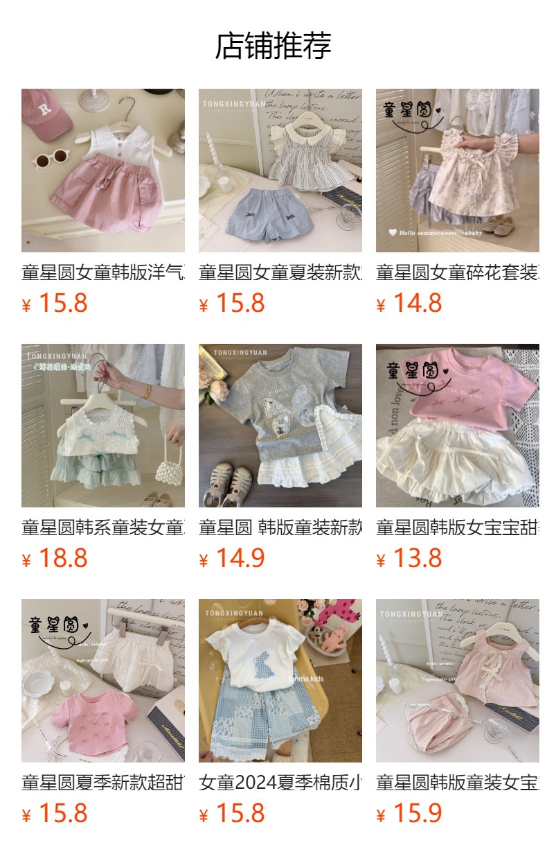 통 싱위안 한국 소녀의 반팔 세트 여름 새로운 세련된 여름 유행 어린이 조끼 반바지 투피스 세트스토어 가기