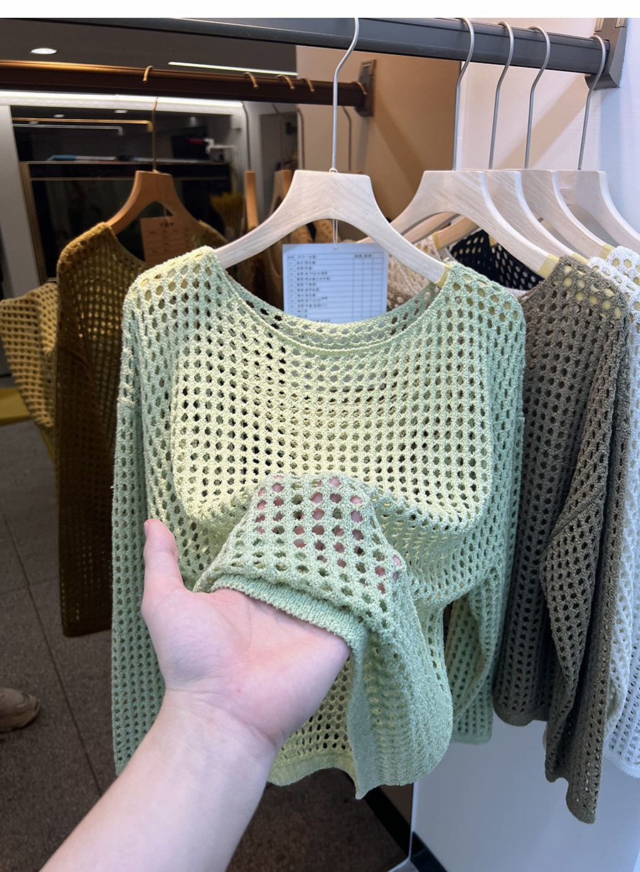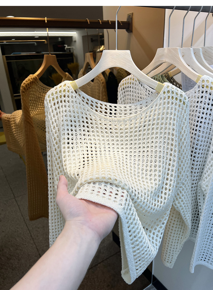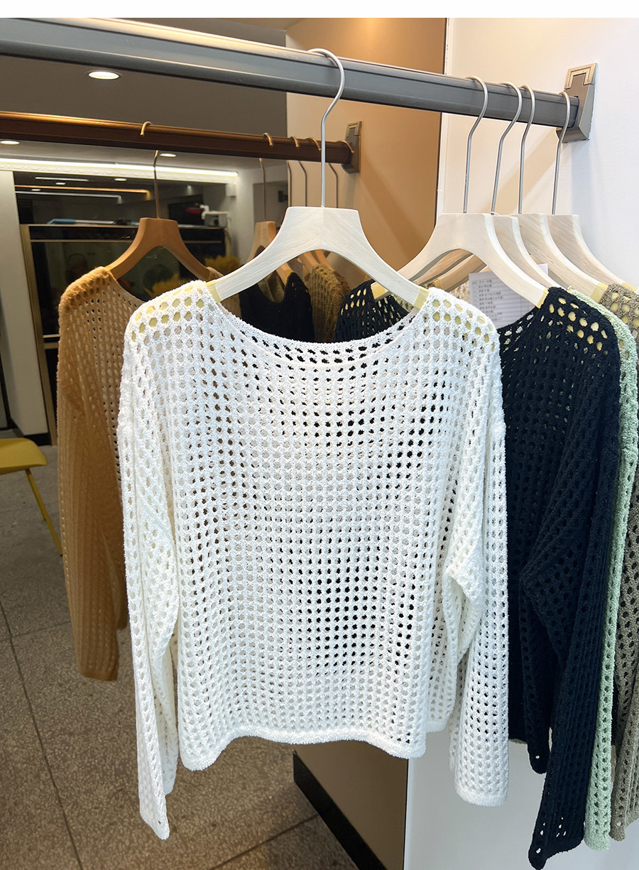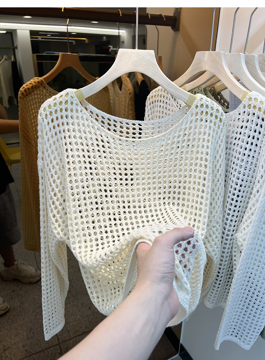 비스코스 섬유 화이트 블라우스 여성용 니트 탑 여름 얇은 긴팔 빈 스웨터 메쉬 셔츠 외부 풀오버스토어 가기