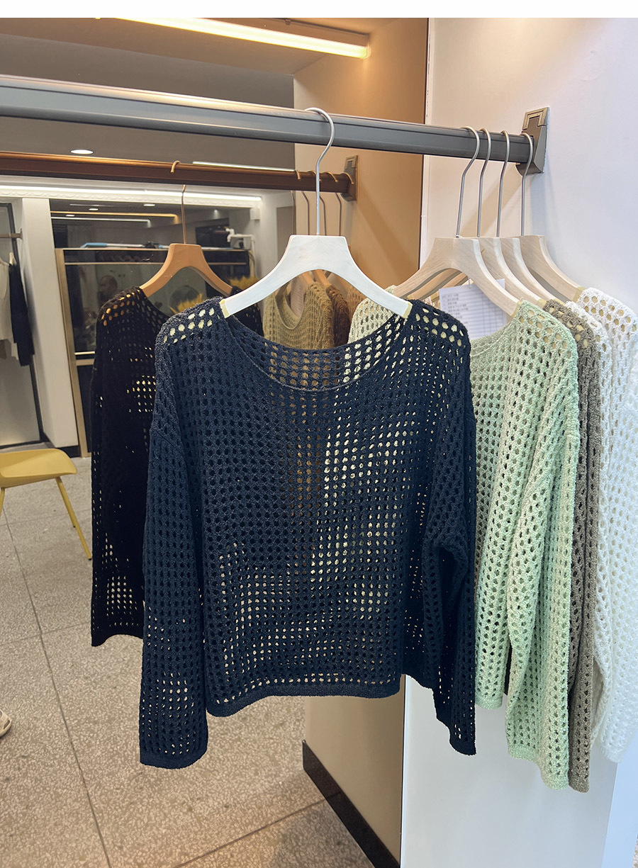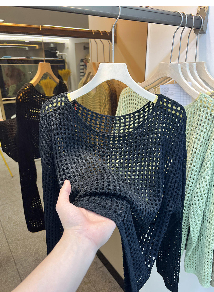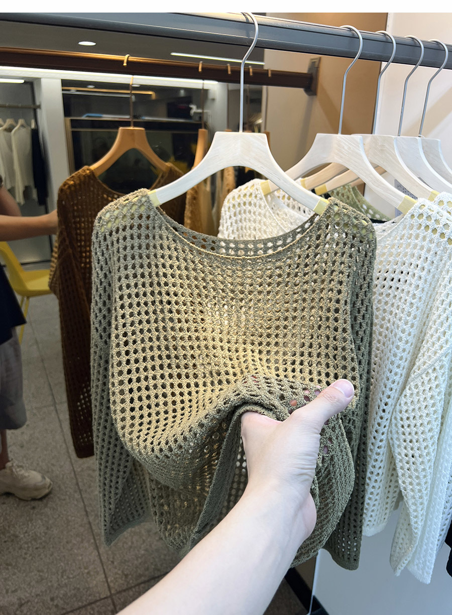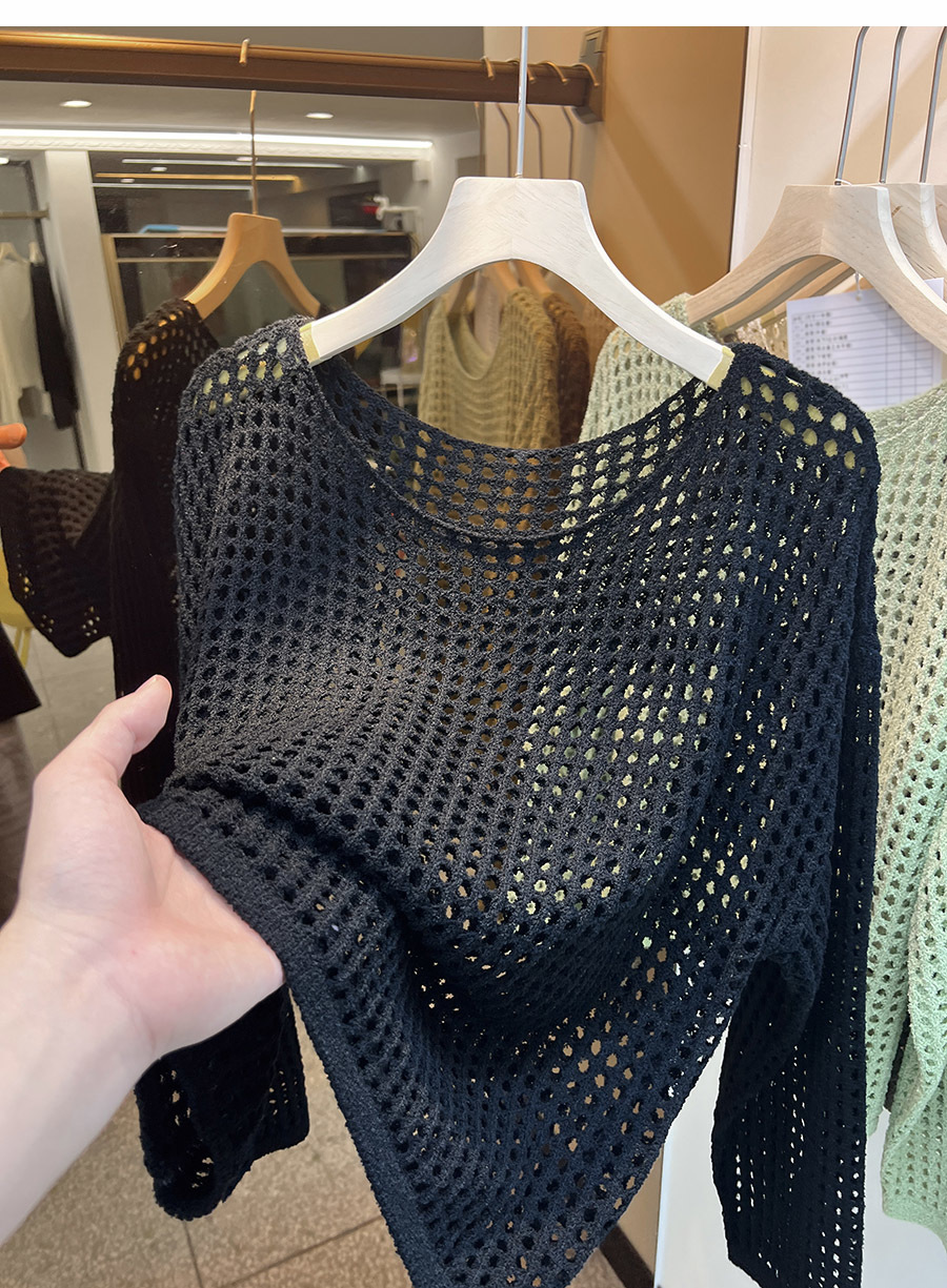 비스코스 섬유 화이트 블라우스 여성용 니트 탑 여름 얇은 긴팔 빈 스웨터 메쉬 셔츠 외부 풀오버스토어 가기
