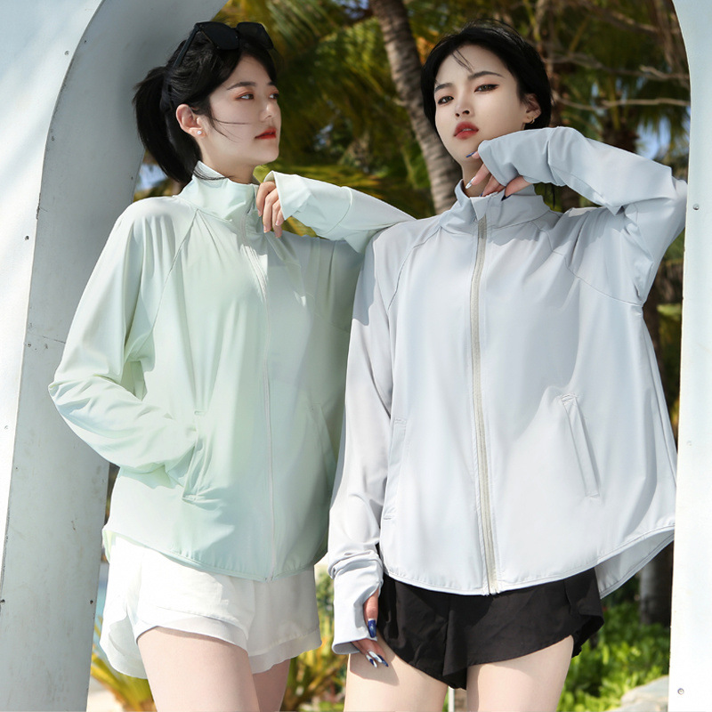 새로운 도착 나일론 선 스크린 의류 여성의 수직 칼라 증오 짧은 코트 자외선 방지 경량 통기성 야외 스포츠 선 스크린 의류