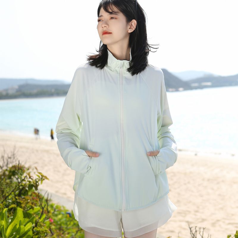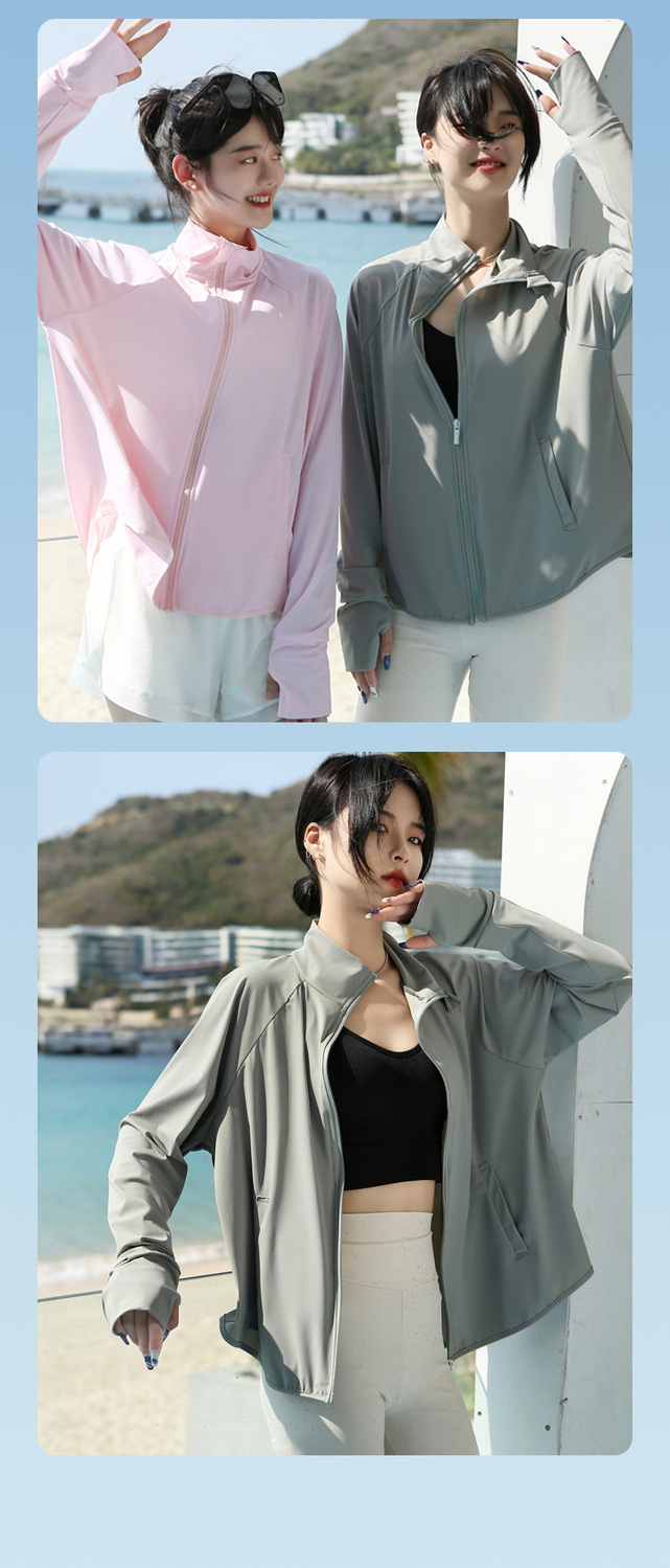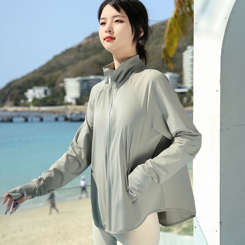 새로운 도착 나일론 선 스크린 의류 여성의 수직 칼라 증오 짧은 코트 자외선 방지 경량 통기성 야외 스포츠 선 스크린 의류스토어 가기