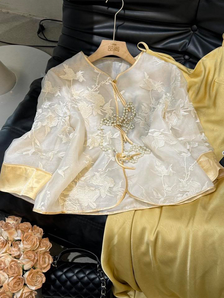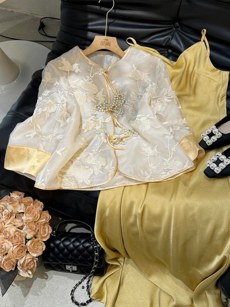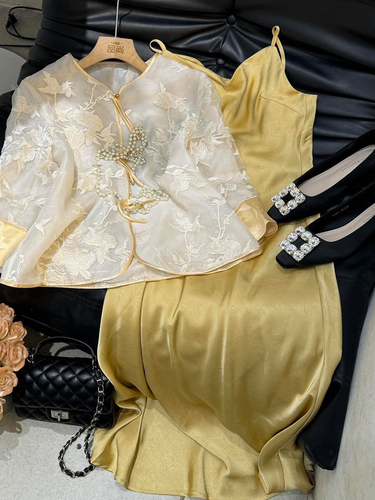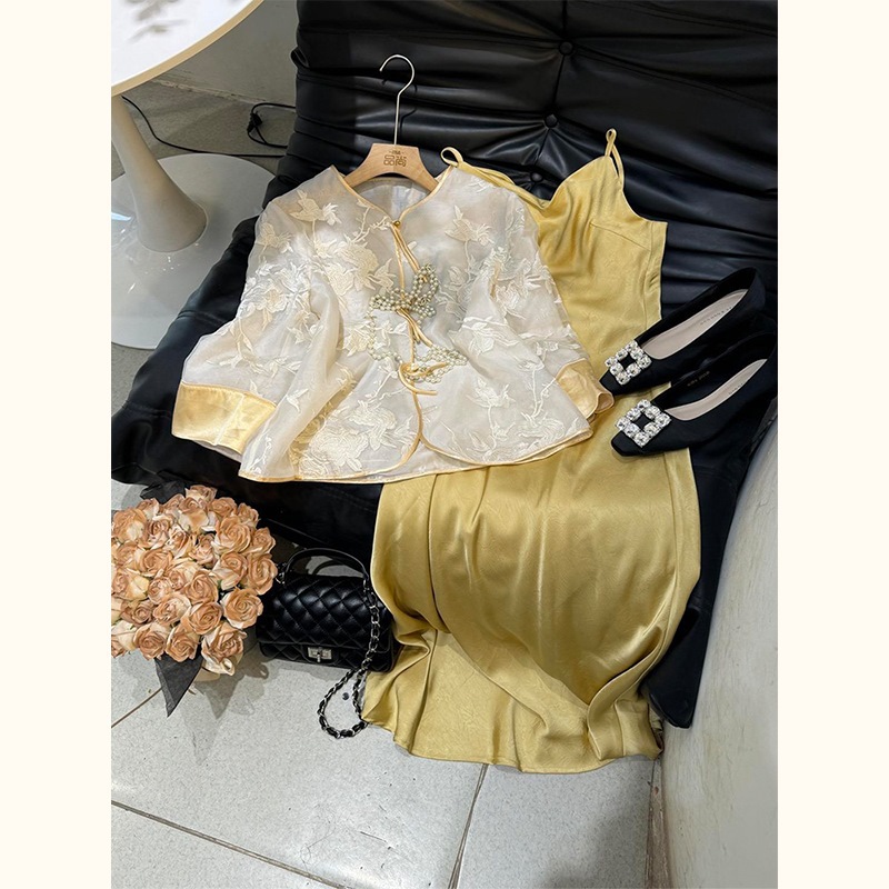 YT327837 나이를 줄이는 마모 아세트산 슬링 원피스 세트와 함께 새로운 중국 스타일 여성 여름복스토어 가기