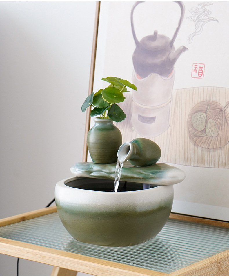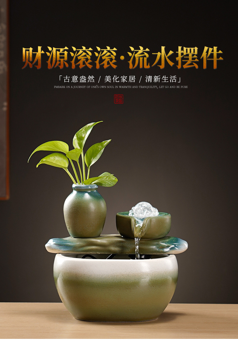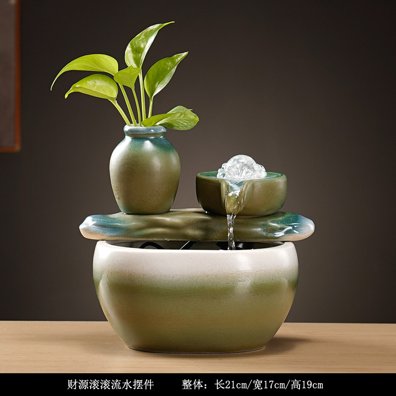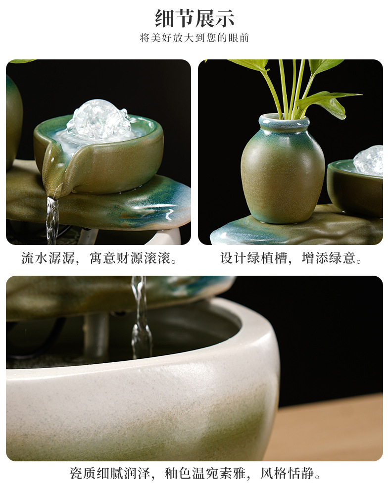 중국 선 도자기 금융 소스 롤링 물 장식품 가마 변화 녹색 풍경 장식 순환 로커리 물 가습기