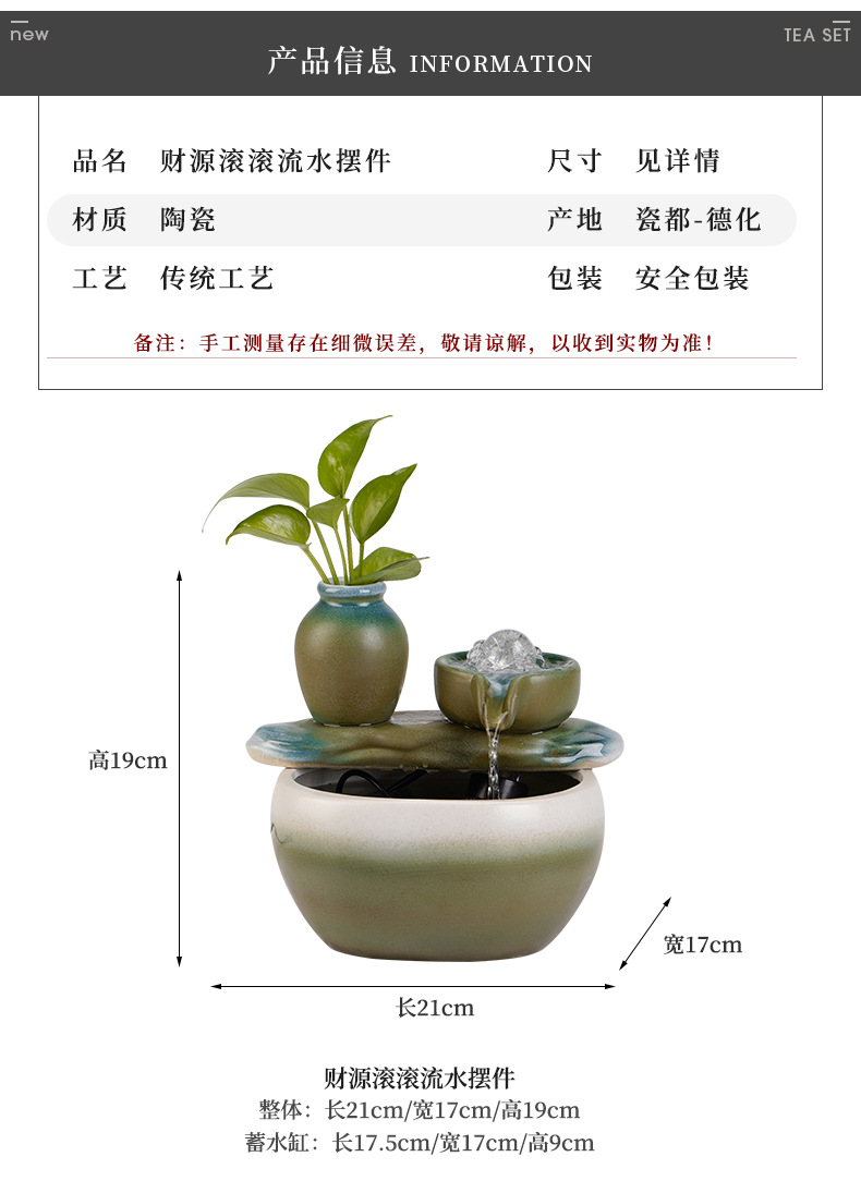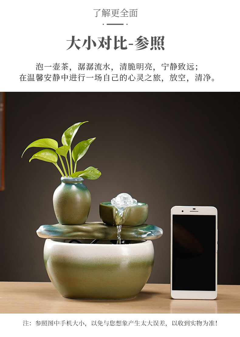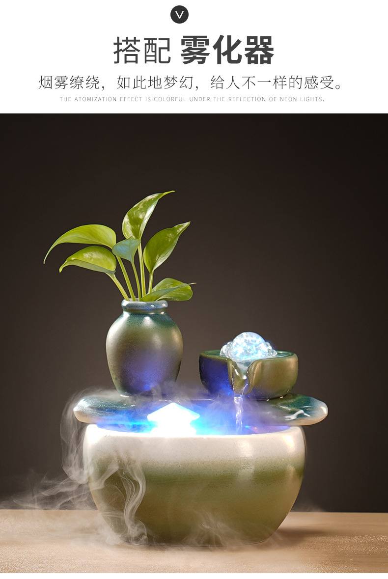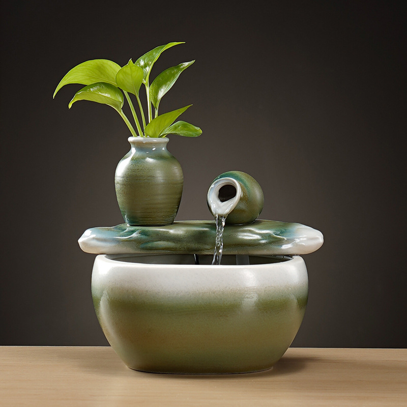 중국 선 도자기 금융 소스 롤링 물 장식품 가마 변화 녹색 풍경 장식 순환 로커리 물 가습기