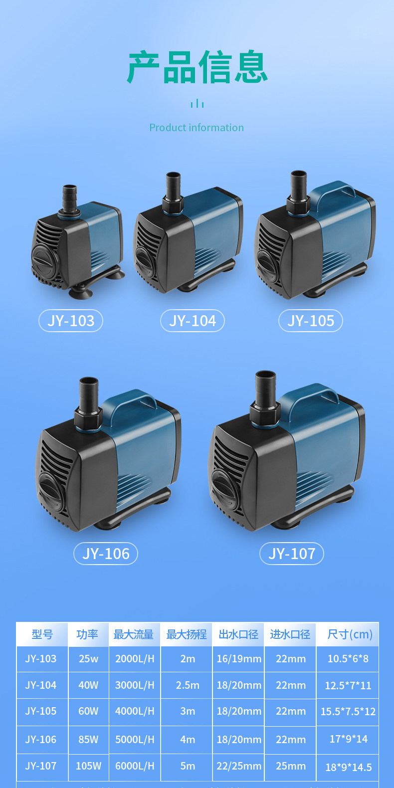 • 25W 수륙 양용 측면 흡입 펌프 (2M 수도관 포함)