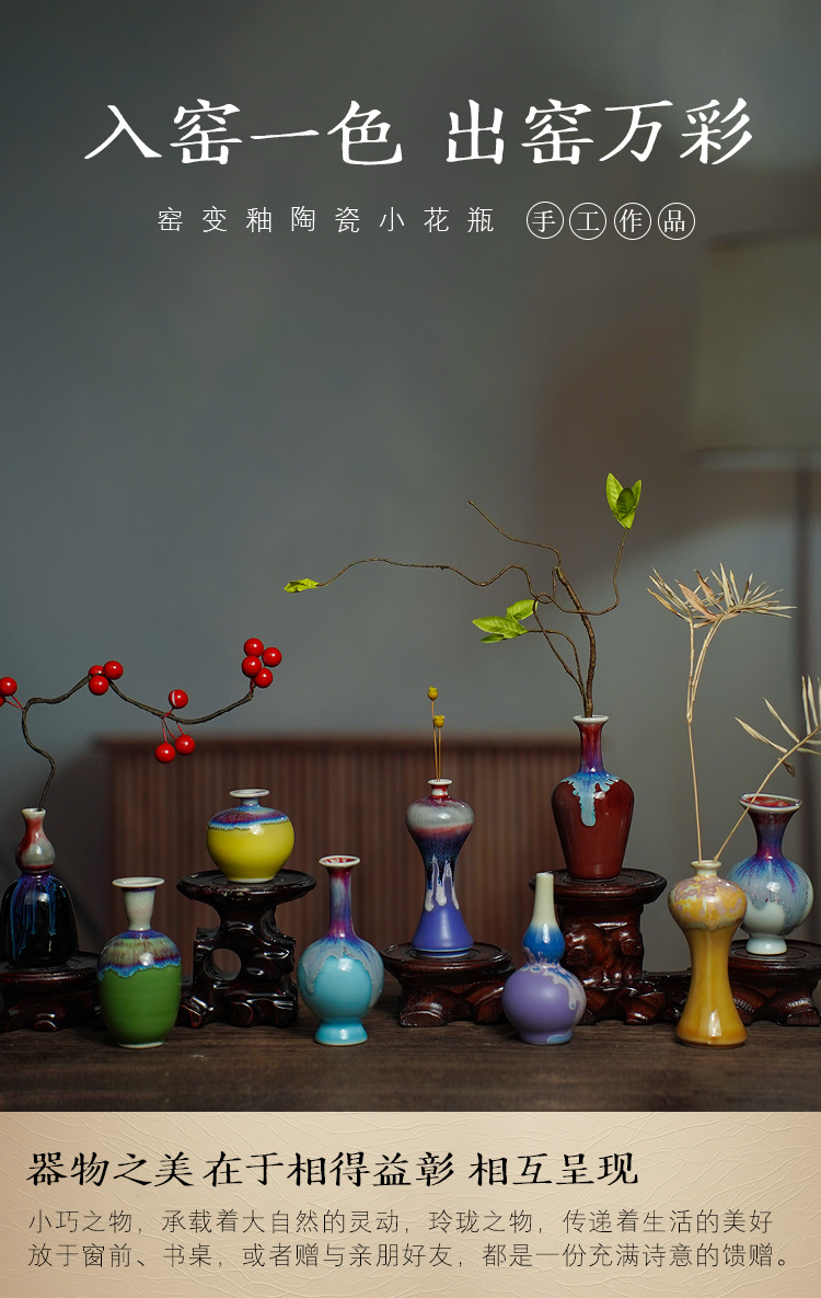 관광 명소 매점 뜨거운 판매 제품 가마 변경 세라믹 미니 작은 꽃병 꽃병 징 데젠 꽃 장식품 도매
